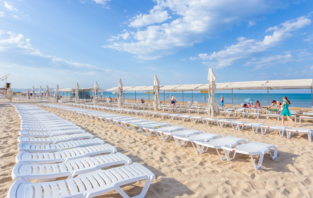 Неподалеку от жилых корпусов постояльцев отеля ждет подготовленный пляж с чистой песчаной береговой полосой, а также с шезлонгами и пляжными зонтиками для защиты от солнца.