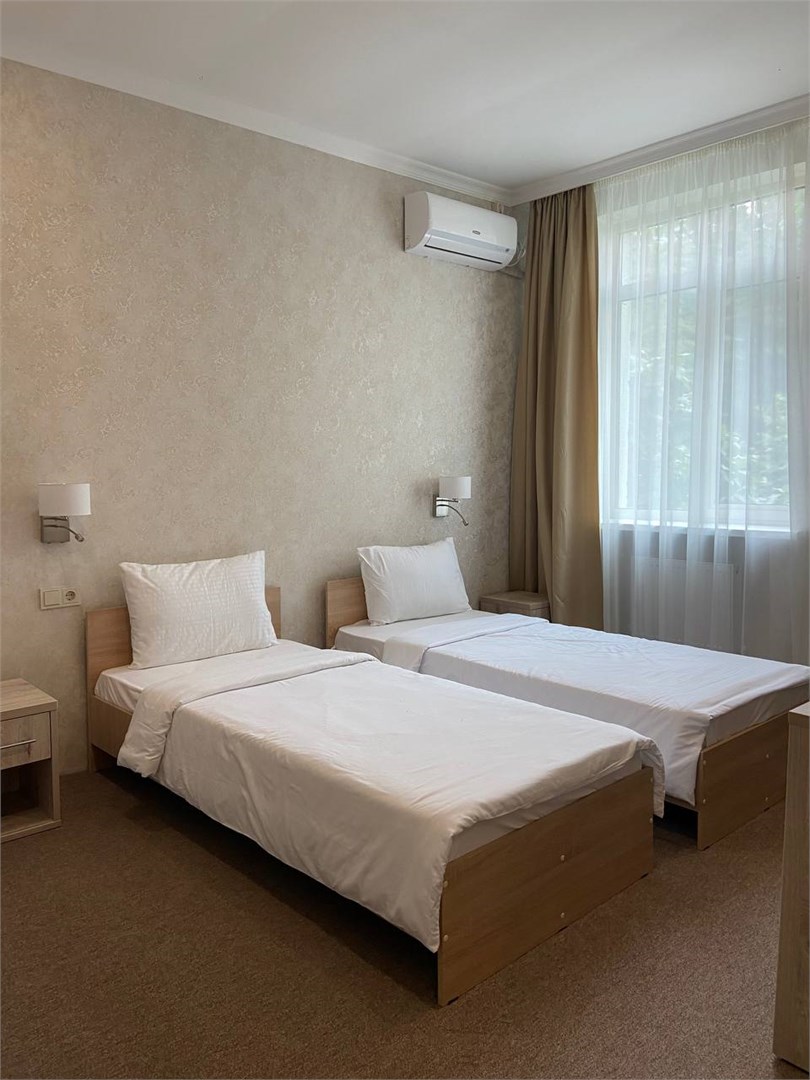 Отель соответствует категории 4* и включает 2 корпуса, номерной фонд от «Стандарта» до «Апартамента», 242 номера: 230 номеров в основном корпусе и 12 номеров в корпусе Прибрежный.