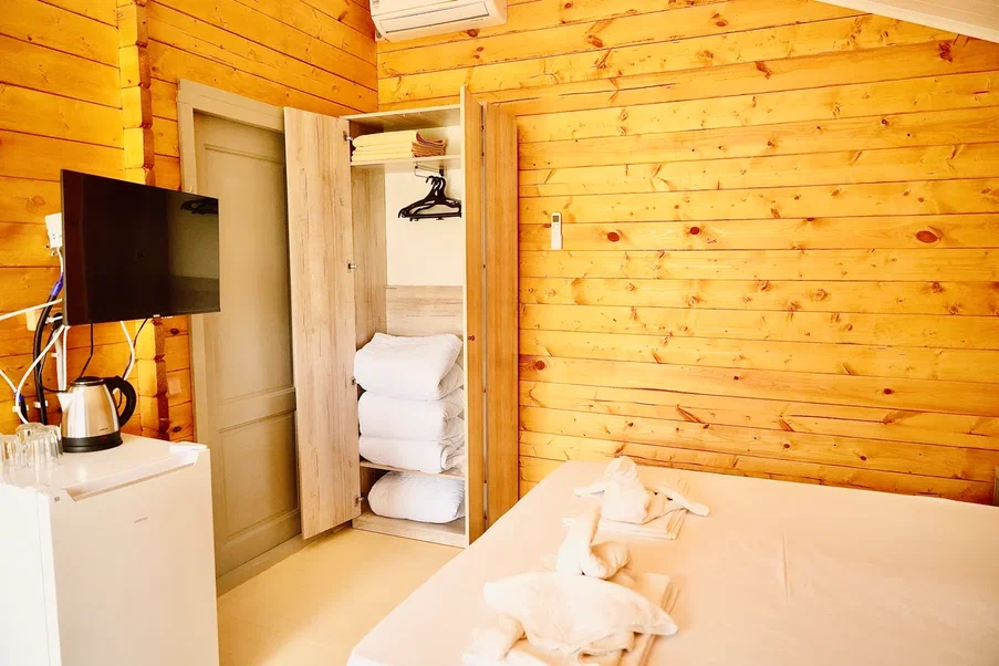Совершенно новый отель в эко-стиле, построенный в 2022 году, выгодно отличается по дизайну. Деревянные уютные домики небесного цвета погрузят Вас в атмосферу спокойствия и расслабленности.