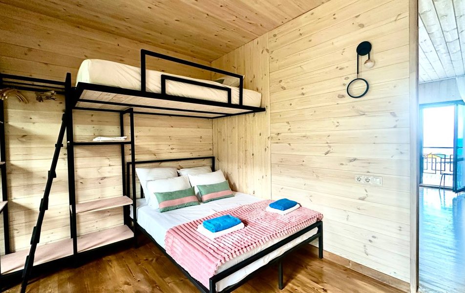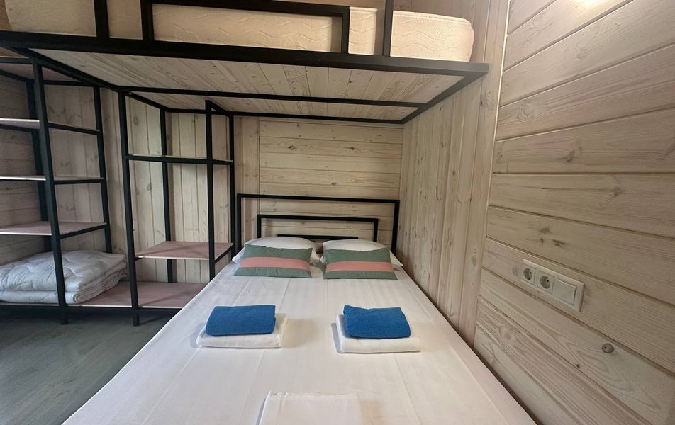 В номере: душ, туалет, ТВ, холодильник, кондиционер, двуспальная кровать (двухъярусная), диван