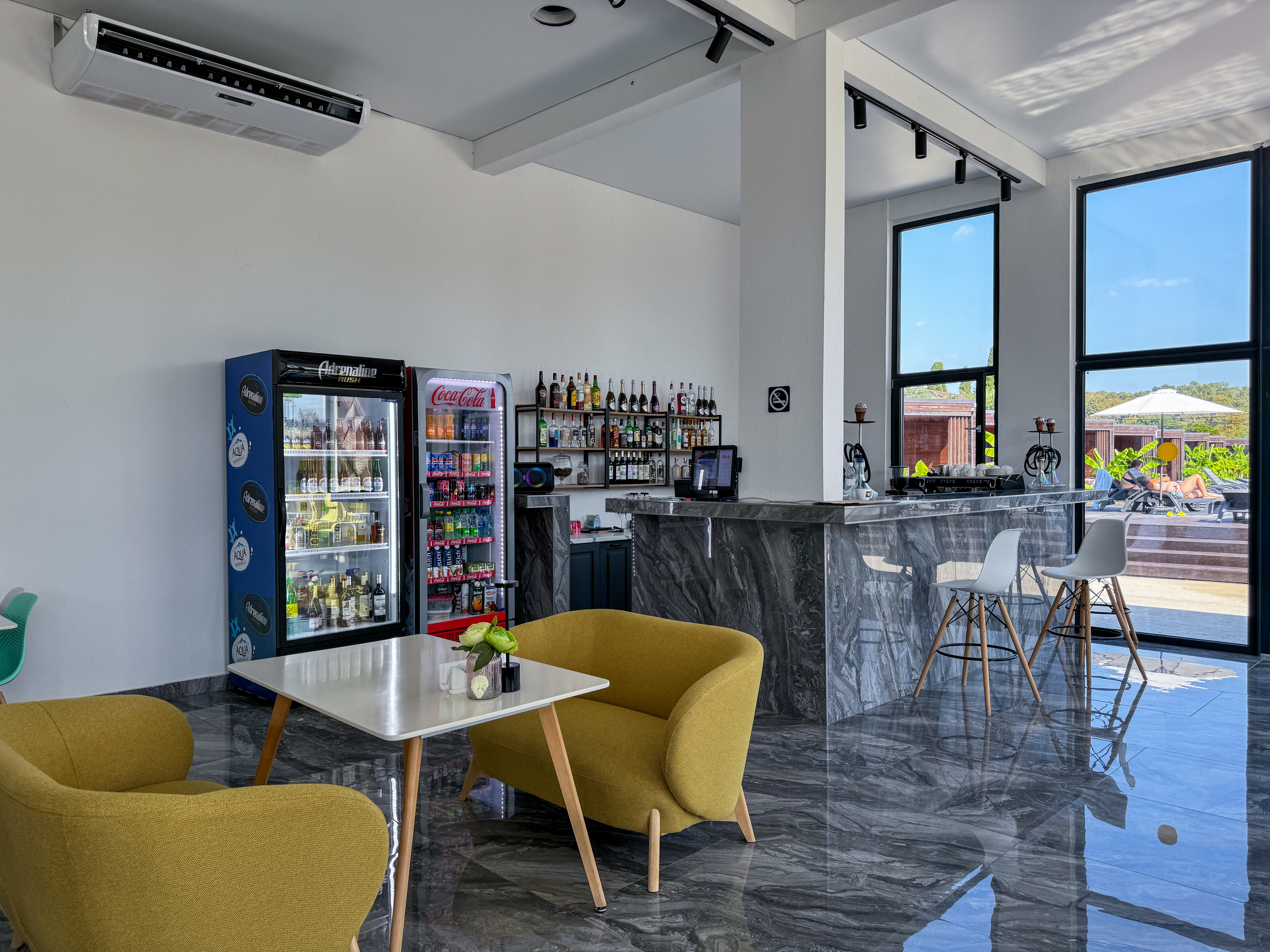 В номере: душ, туалет, ТВ, холодильник, кондиционер, сейф, фен, чайная станция, двуспальная кровать, диван, терраса