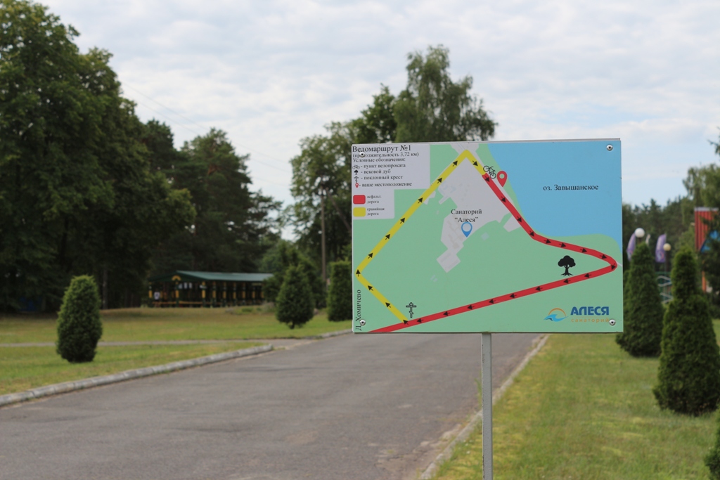 Выгодное расположение санатория "Алеся" создает уникальные возможности для проведения климатотерапии: воздушные и солнечные ванны, купание в озере, аэротерапия, дасотерапия создают условия комплексного воздействия климатических факторов на организм.