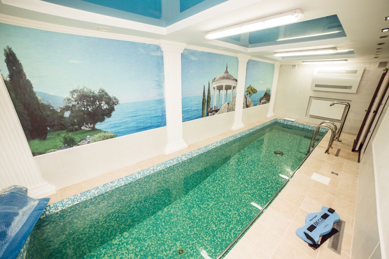Спорт: крытый бассейн (150 м², 20х7.5 м, гидропушки, каскад, джакузи, детская зона, аква-тренажер, главный корпус), спортивный зал, тренажерный зал, спортивная площадка (волейбол, мини-футбол, стрит-бол, уличные тренажеры), настольный теннис, прокат спортивного инвентаря, теннисный корт (открытый, с искусственным покрытием)