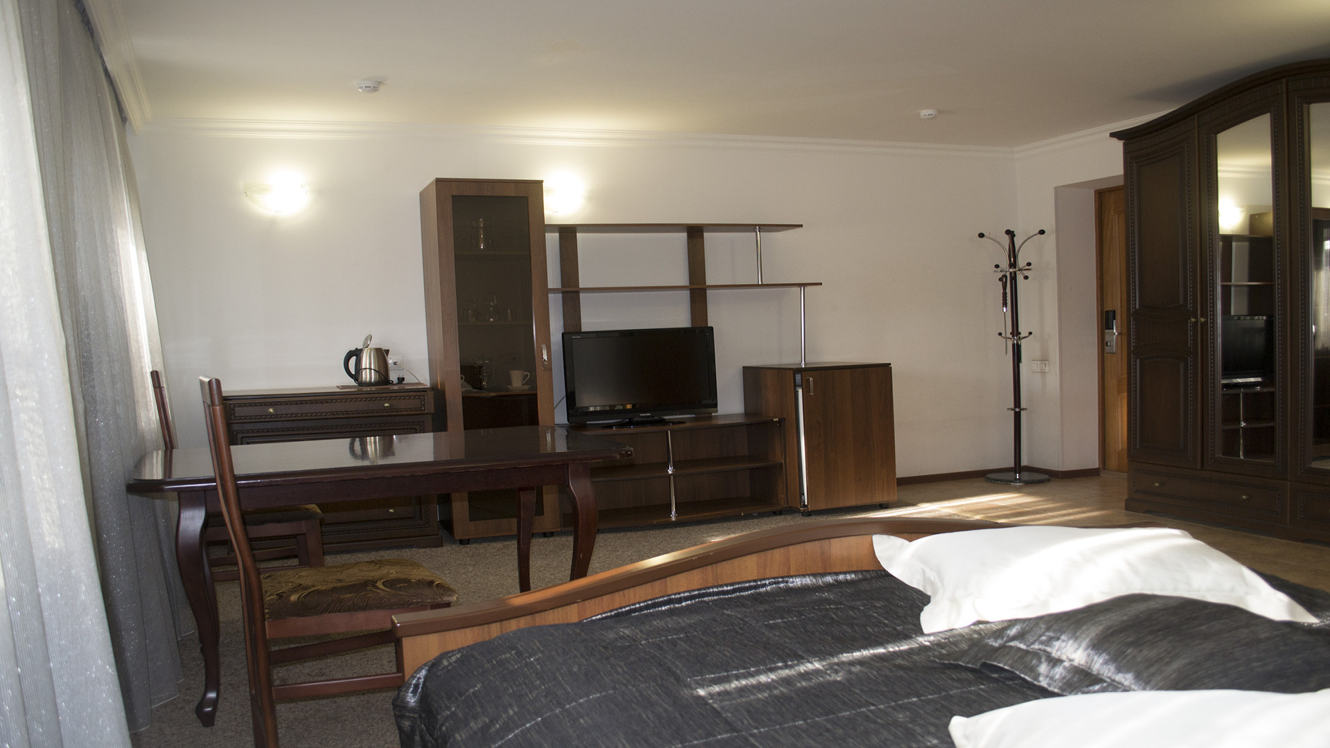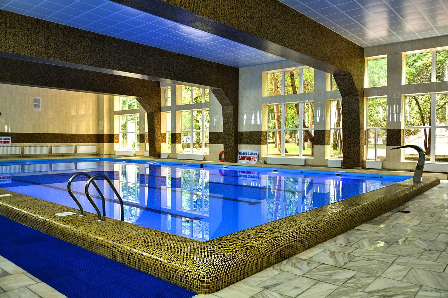 В корпусе: номерной фонд, крытый теплый переход в столовую и медицинский центр, бассейн