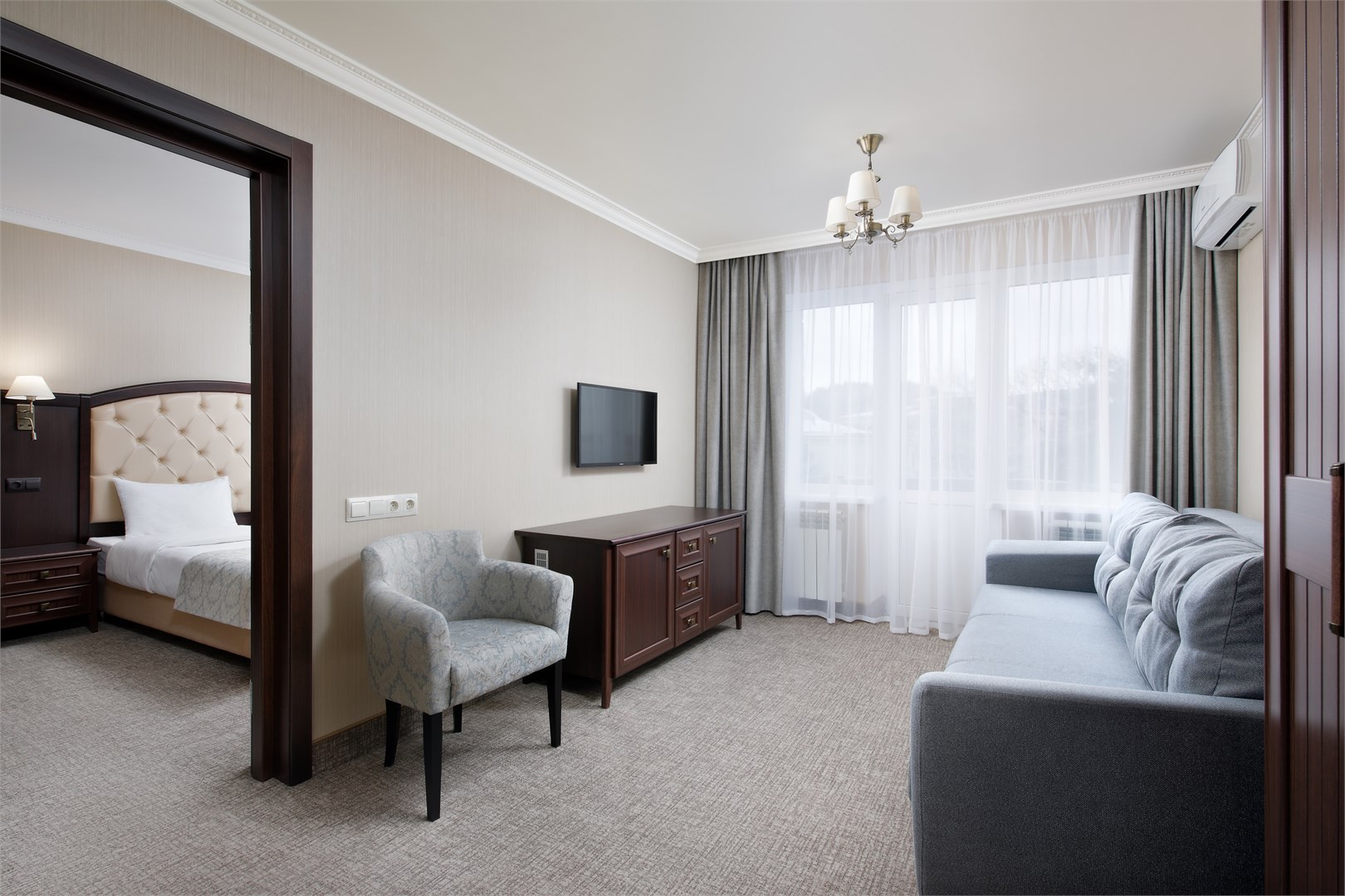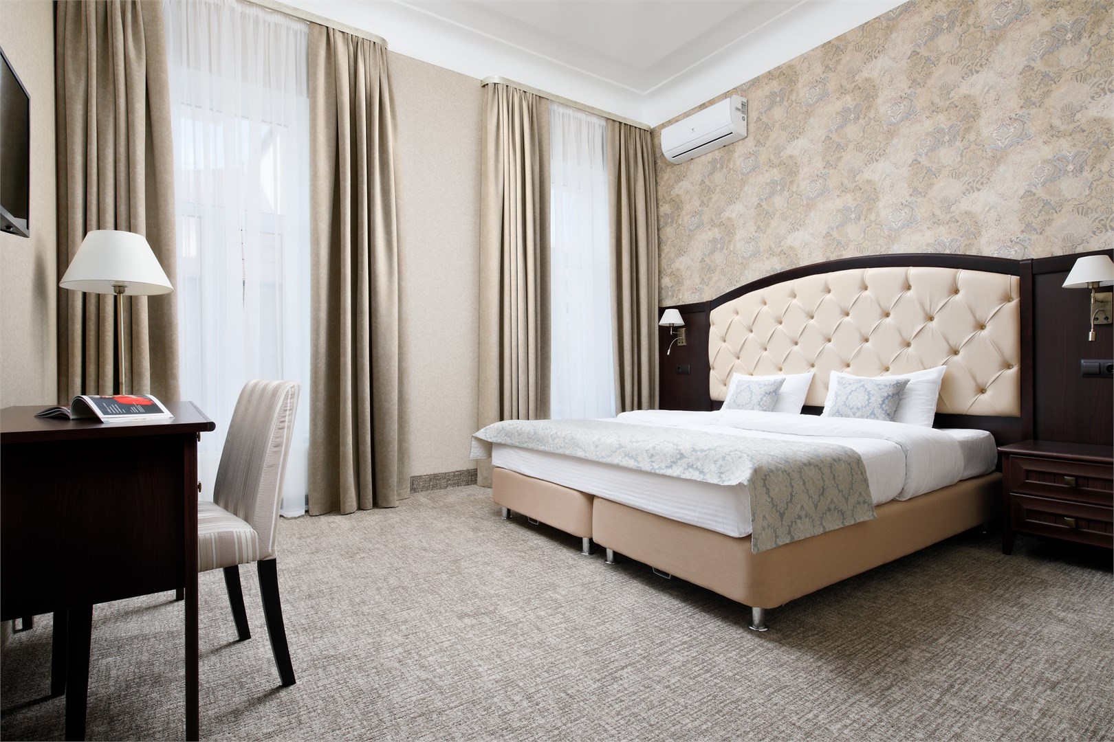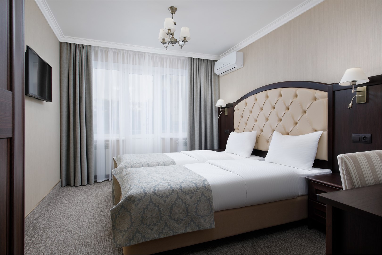 В номере: душ, туалет, ТВ, холодильник, кондиционер, сейф, фен, телефон, чайная станция, электрочайник, двуспальная или две раздельные кровати, балкон