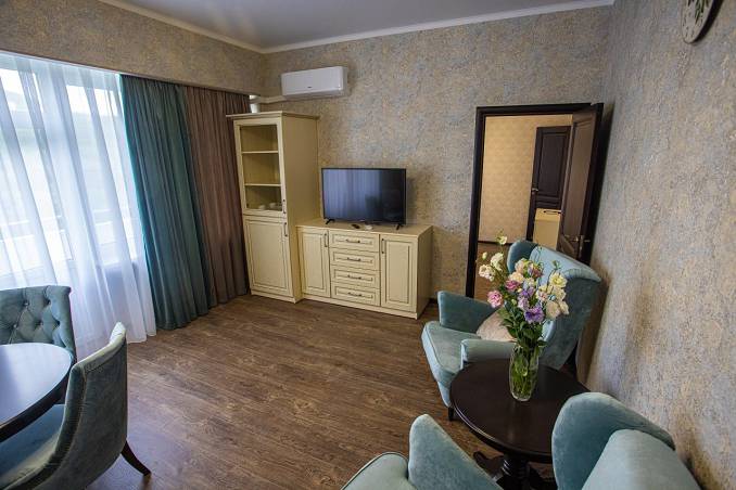 Лечебная база: Тариф "Курортная": консультации терапевта; питьевое лечение минеральной водой; ароматерапия; фиточай; ЛФК.