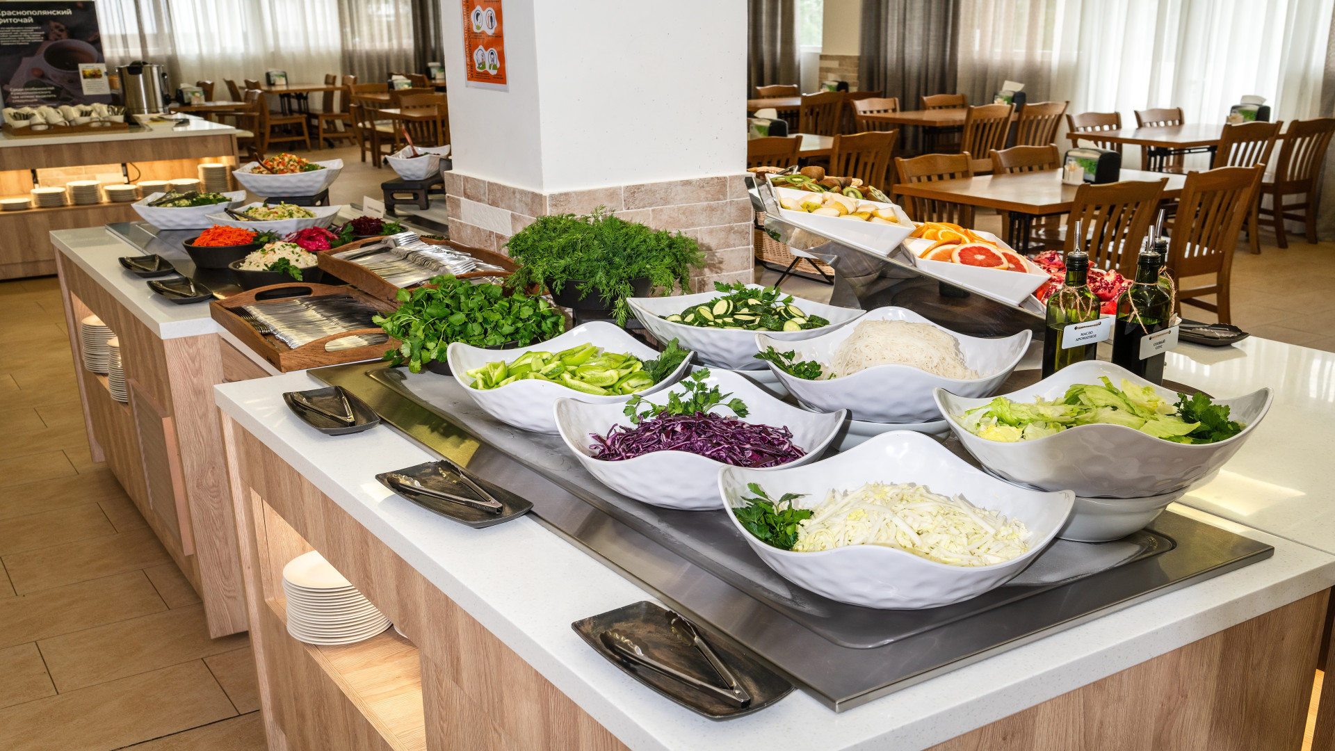 Питание: столовая, бар (караоке-бар), кафе (50 м от санатория круглогодично работает кафе "РИО")