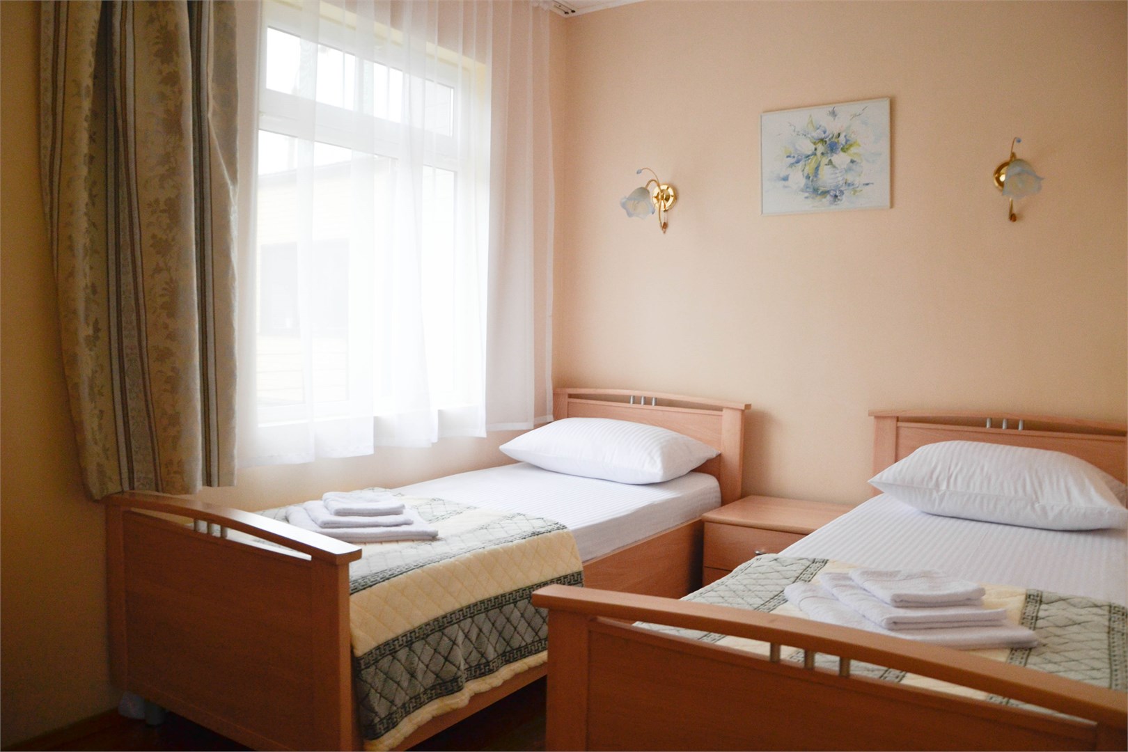 В номере: душ, туалет, ТВ, холодильник, кондиционер, односпальная кровать, две раздельные кровати