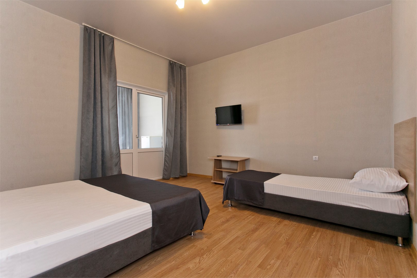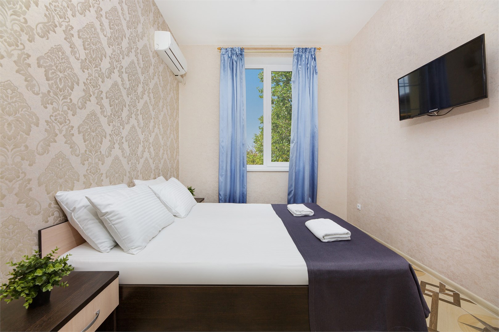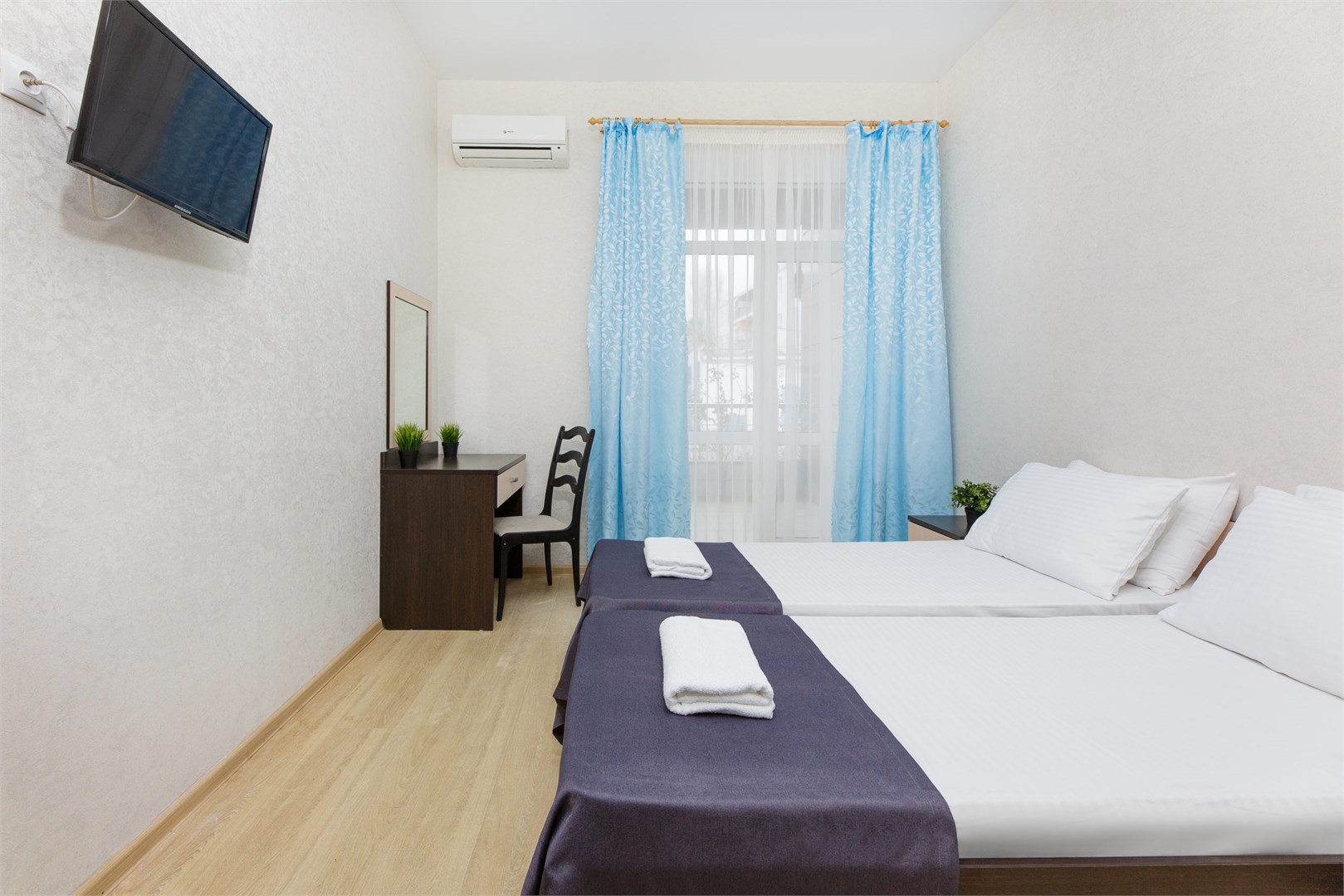 Бесплатные услуги: открытый бассейн без подогрева (с детской зоной), парковка, анимация, Wi-Fi, песчаный (300 м от отеля, городской)