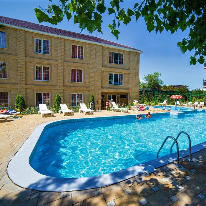 Отель предлагает своим гостях 3-х разовое питание по системе «шведский стол», большой летний открытый бассейн с детской чашей и шезлонгами, парковку. Три раза в неделю проводится детская анимация.