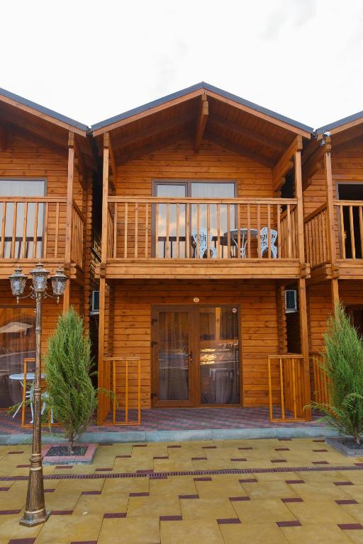В коттедже: душ, ТВ, холодильник, кондиционер, сейф, фен, телефон, электрочайник, двуспальная кровать, диван, кресло, балкон