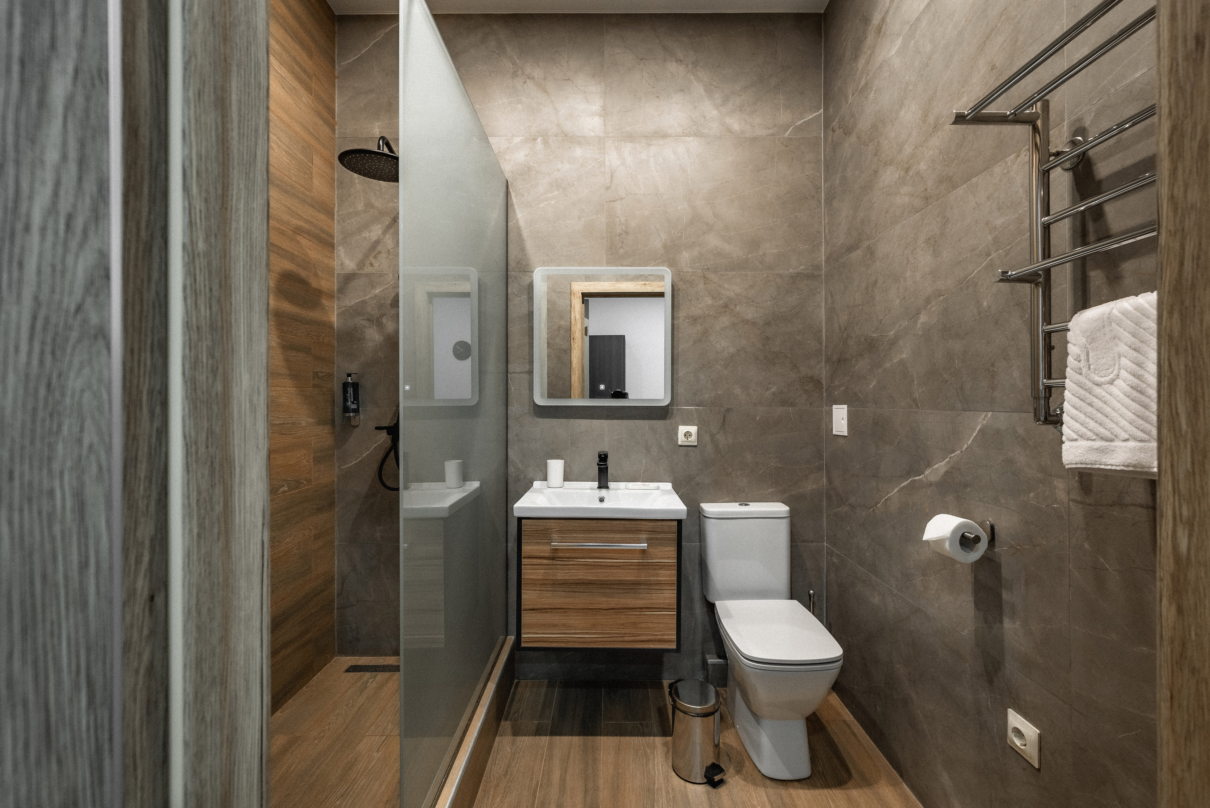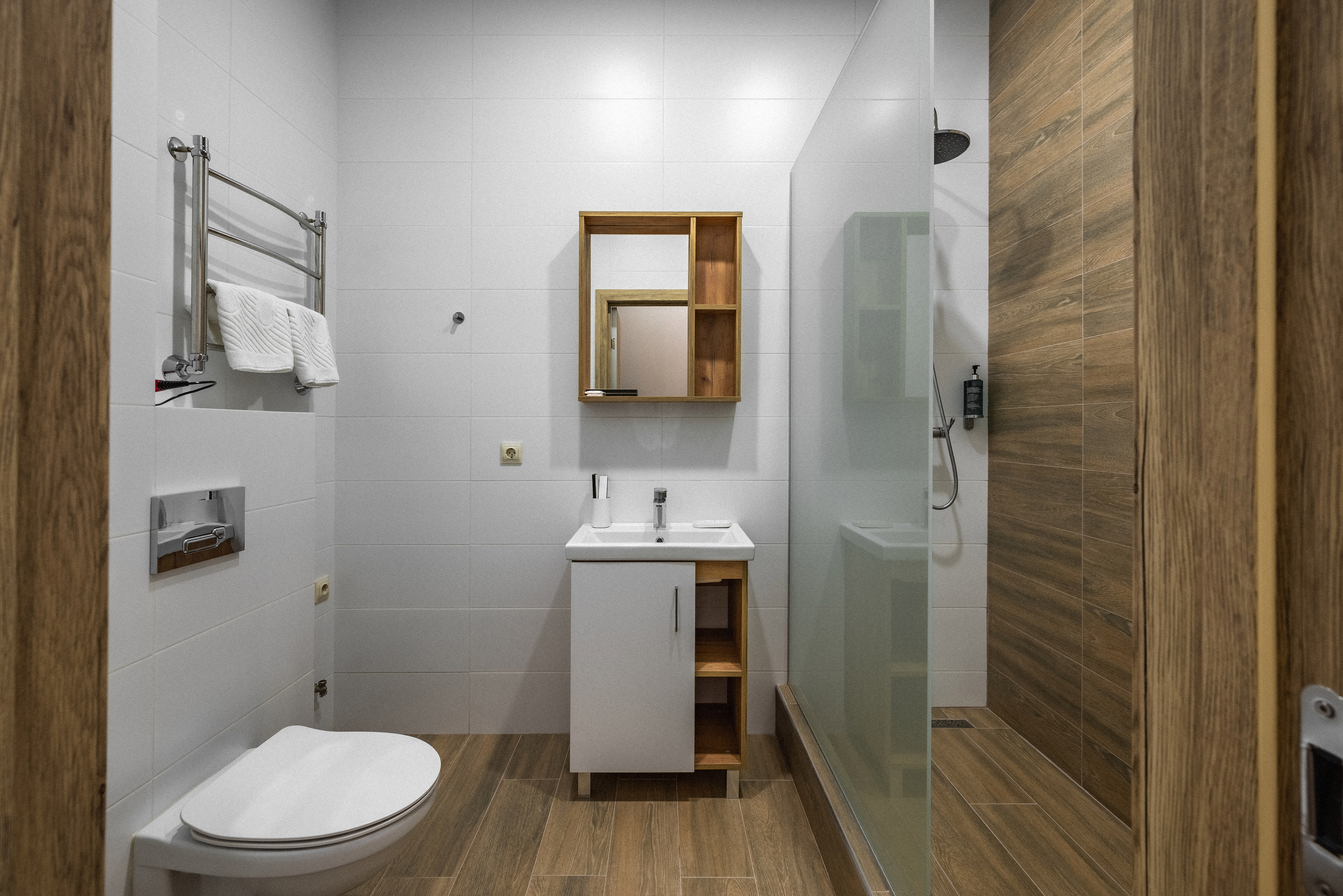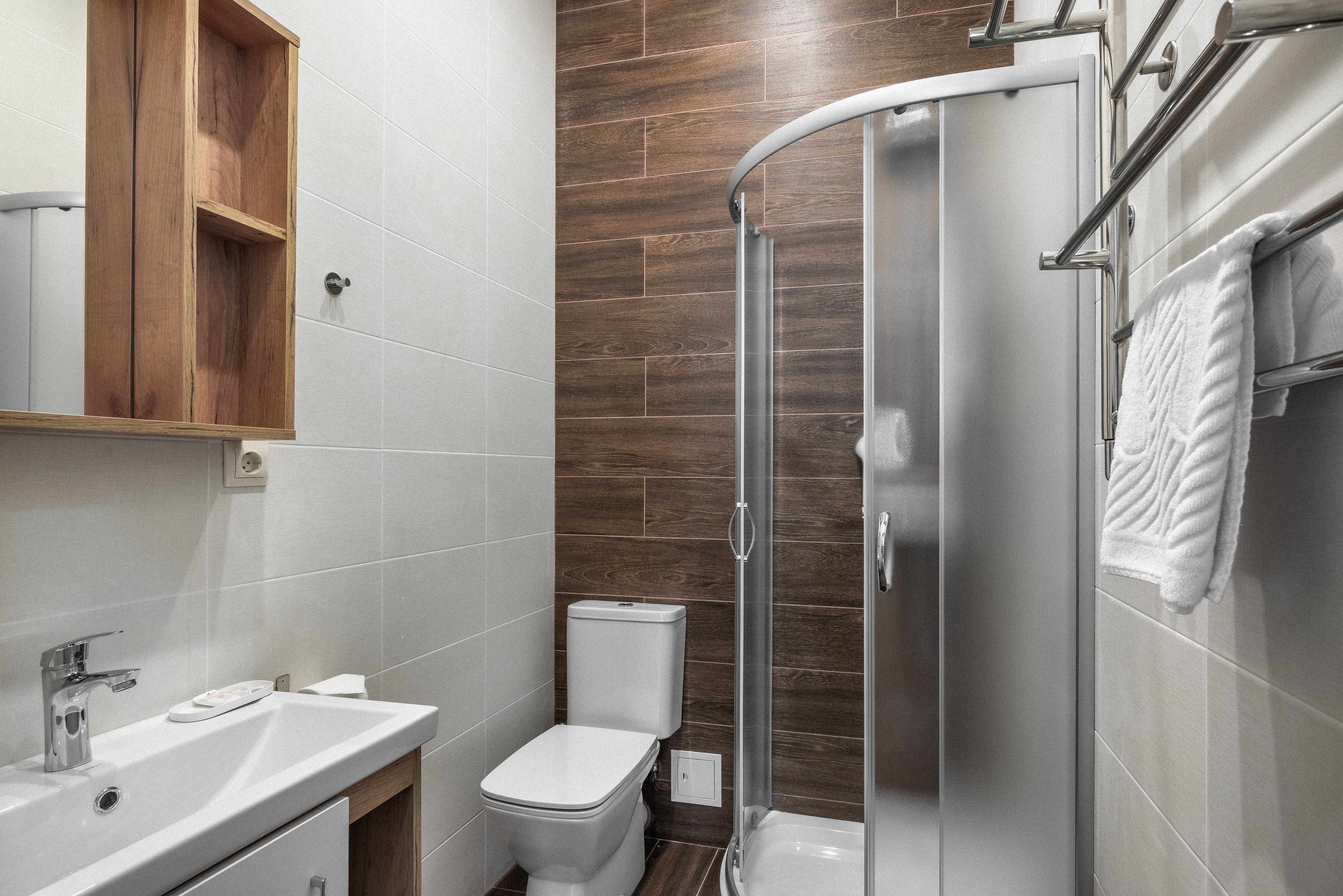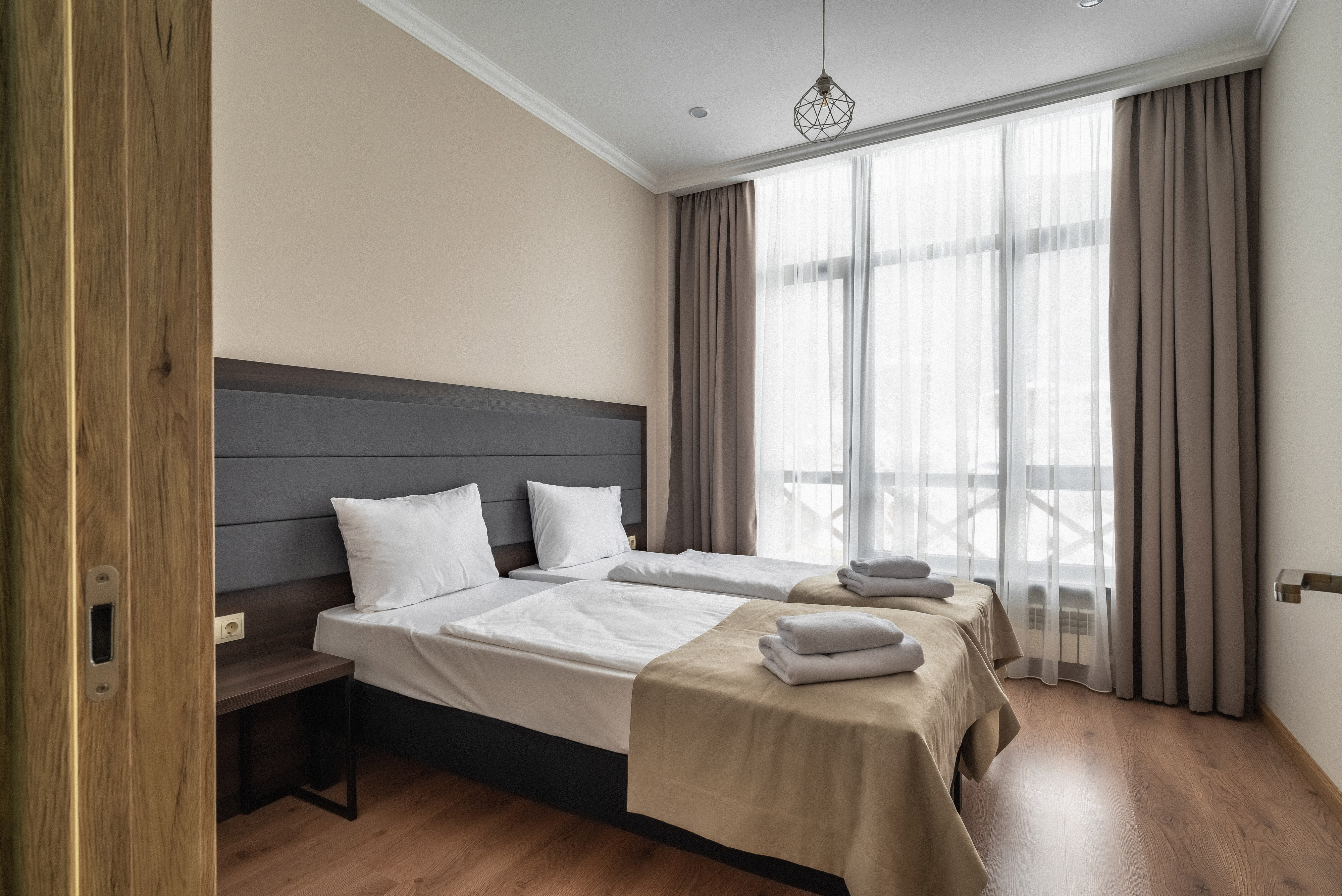 В корпусе: душ, туалет, ТВ, холодильник, кондиционер, сейф, мини-кухня, электрочайник, СВЧ-печь, две раздельные кровати, балкон