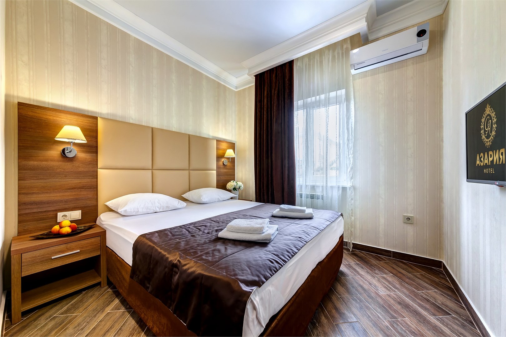 Отель «Азария» - современный комфортабельный отель, расположенный в уютном и экологичном районе города Геленджик. Отель находится всего в 400 м от центрального городского пляжа, вблизи основной инфраструктуры курорта: парка с аттракционами, кинотеатра «Радуга», аквапарка, кафе, баров, магазинов, в 37 км от ж/д вокзала г. Новороссийск, в 10 км от аэропорта г. Геленджик.