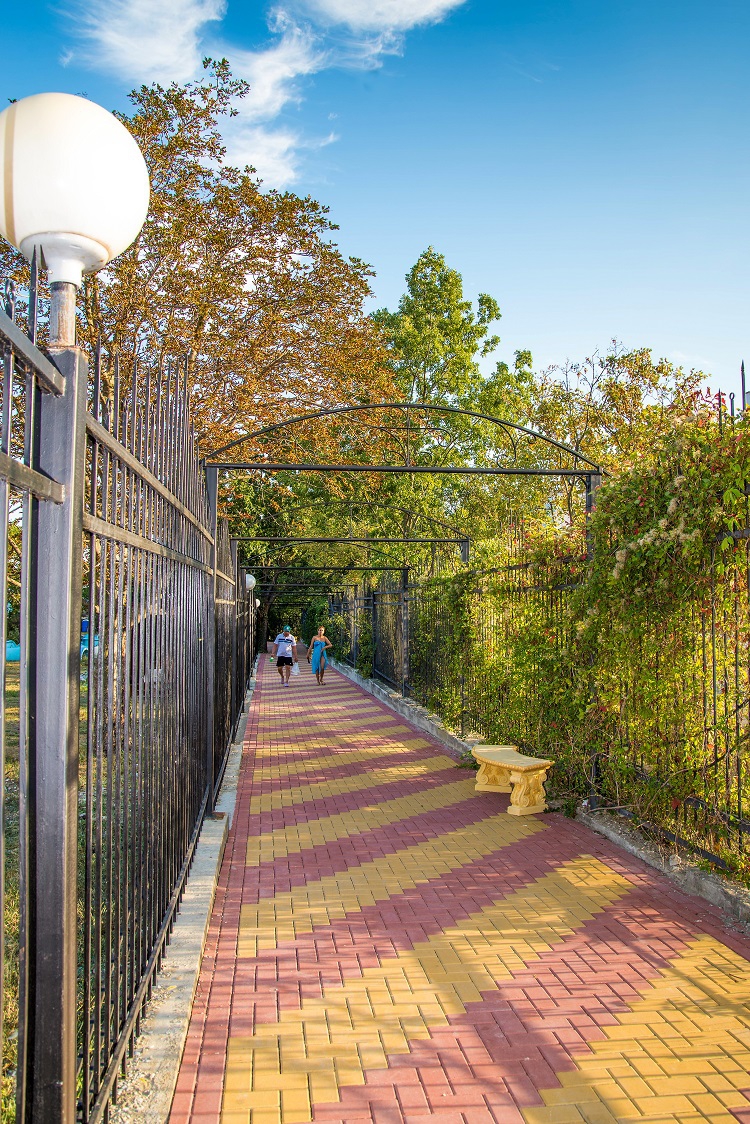 Спорт: открытый бассейн без подогрева (с каскадным душем, детской зоной, размер 20х15м., глубина 3), крытый бассейн (подогреваемый, в спа-центре), тренажерный зал, спортивная площадка