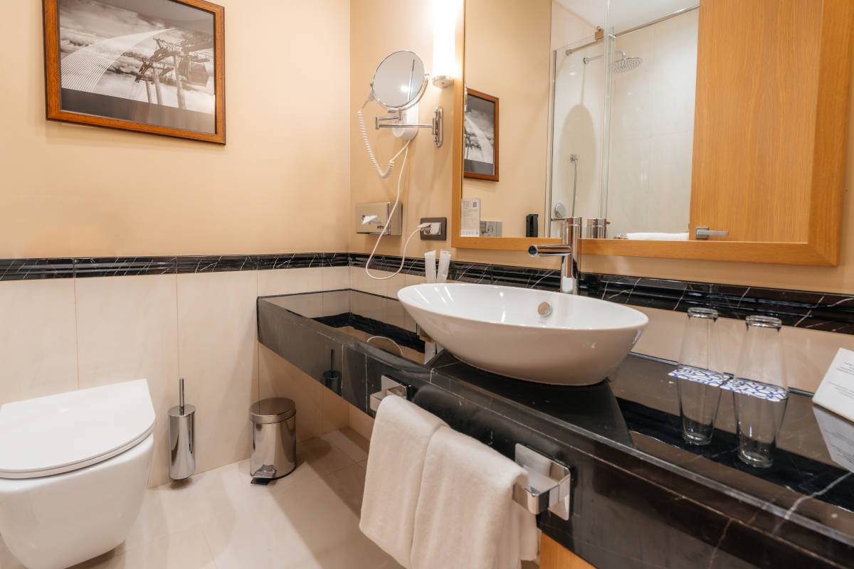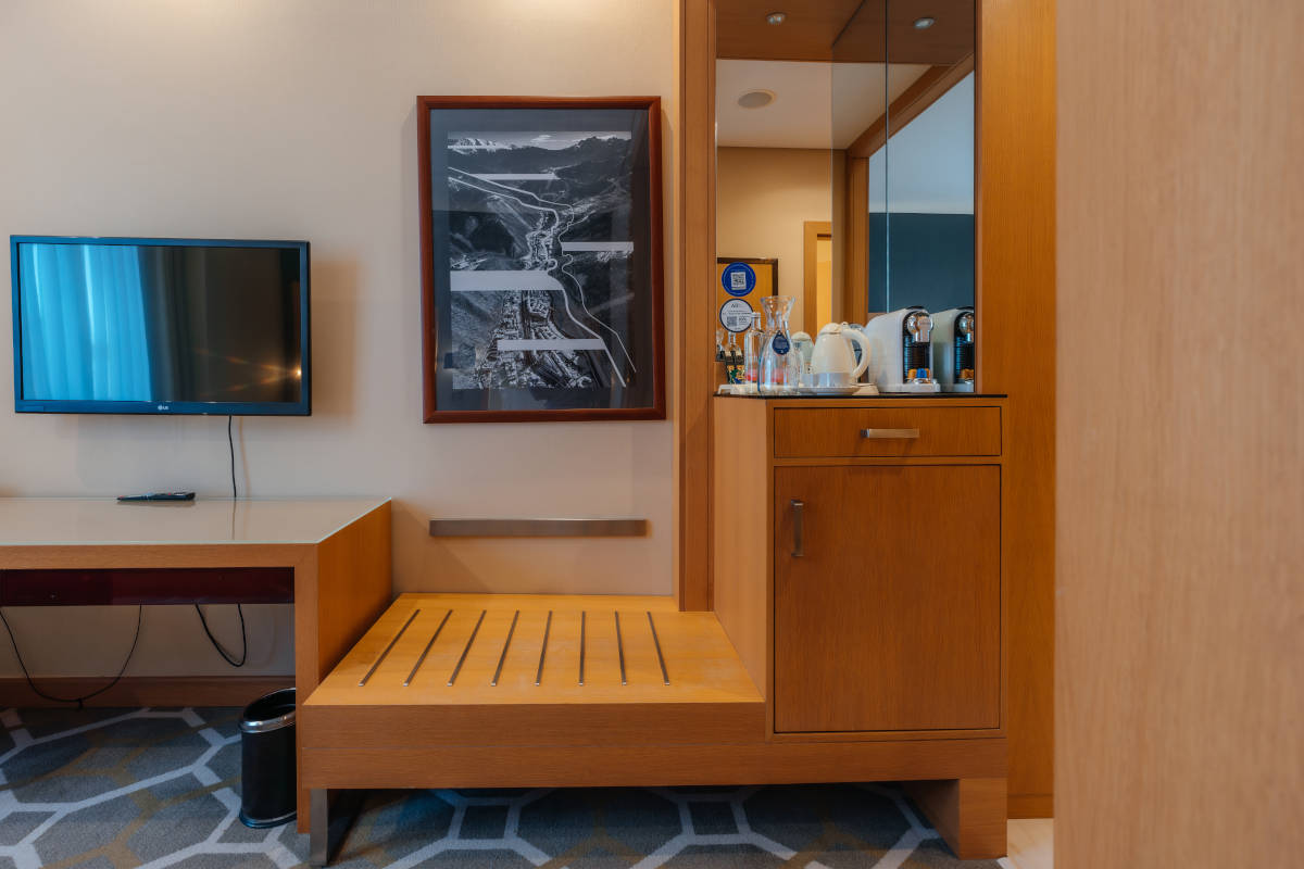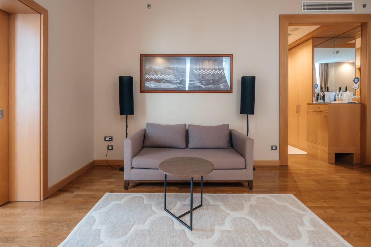 тренажерный зал, прокат спортивного инвентаря (прокат горнолыжного оборудования, а также комната для хранения горнолыжного снаряжения.), открытый бассейн с подогревом (подогреваемый , 17 м., раздевалки с саунами на самом верхнем уровне 6 этажа отеля)