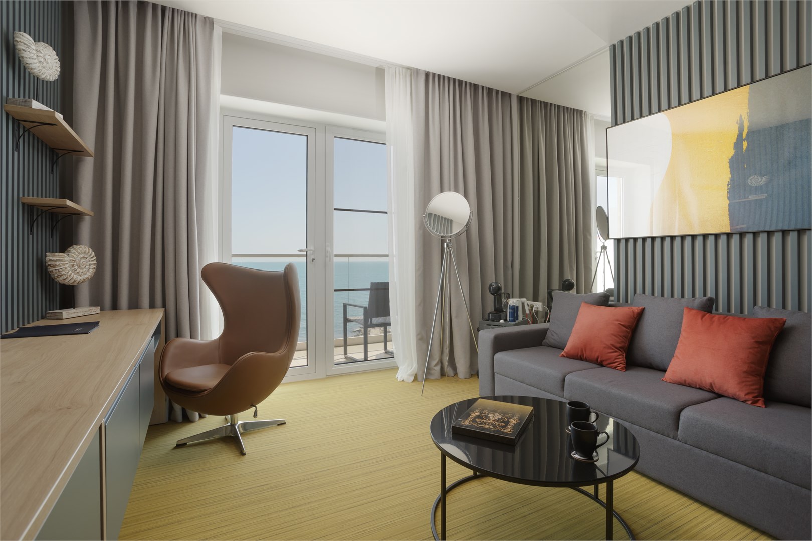 Здесь гостей ждут просторные номера с рабочей, гостевой и спальной зонами, стильным интерьером и панорамными окнами с видом на море или горы в зависимости от предпочтений. Быстрый check-in, безупречная чистота и полное уединение.