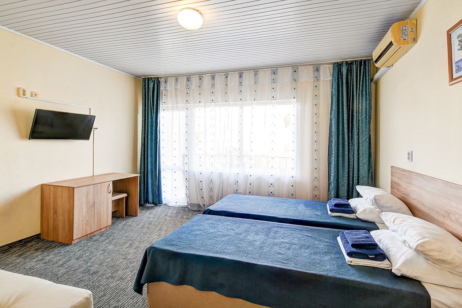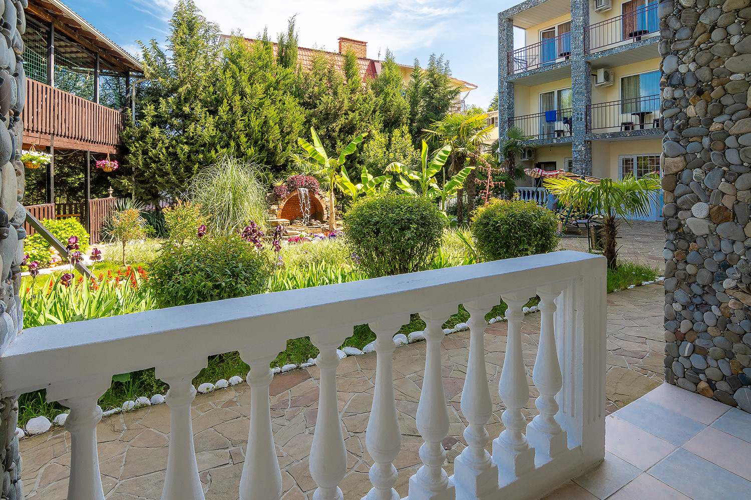 Бесплатные услуги: открытый бассейн с подогревом, парковка, библиотека, анимация, Wi-Fi, мангальная зона, галечный (городской, оборудованный, в 400 м. от отеля)