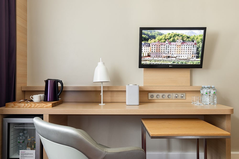 В номере: душ, туалет, ТВ, холодильник, кондиционер, сейф, фен, телефон, чайная станция, электрочайник, двуспальная кровать, диван (раскладной), утюг