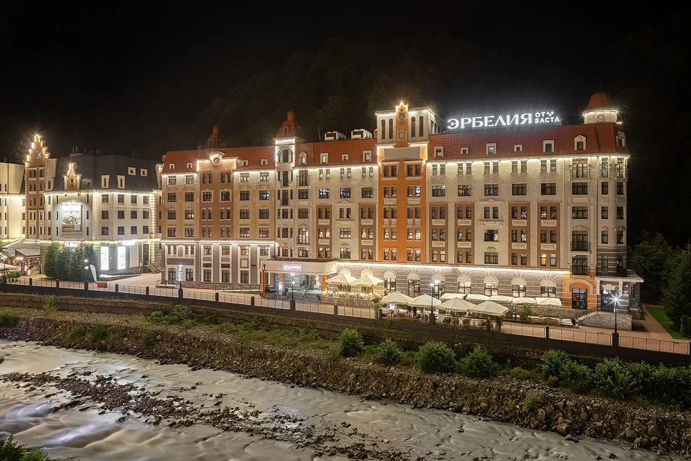 Эрбелия от Васта, Роза Хутор- современный четырехзвездочный отель с бассейном и SPA, расположен в центре курорта Роза Хутор у подножия Кавказских гор на берегу реки Мзымта, в 5 минутах ходьбы от канатных дорог (400 метров), в центре развитой развлекательной и транспортной инфраструктуры курорта, а также в близости от ж/д станции "Роза Хутор" и всего необходимого для комфортного пребывания независимо от целей поездки.
