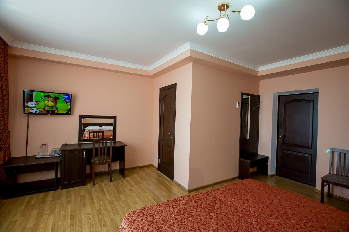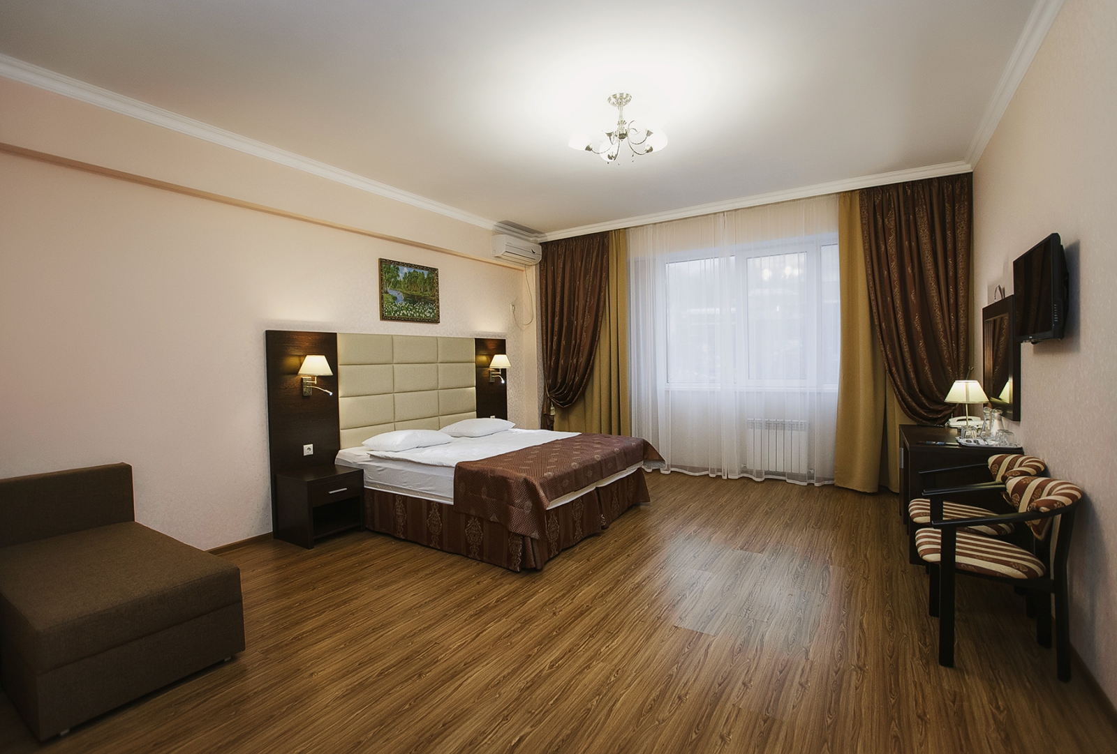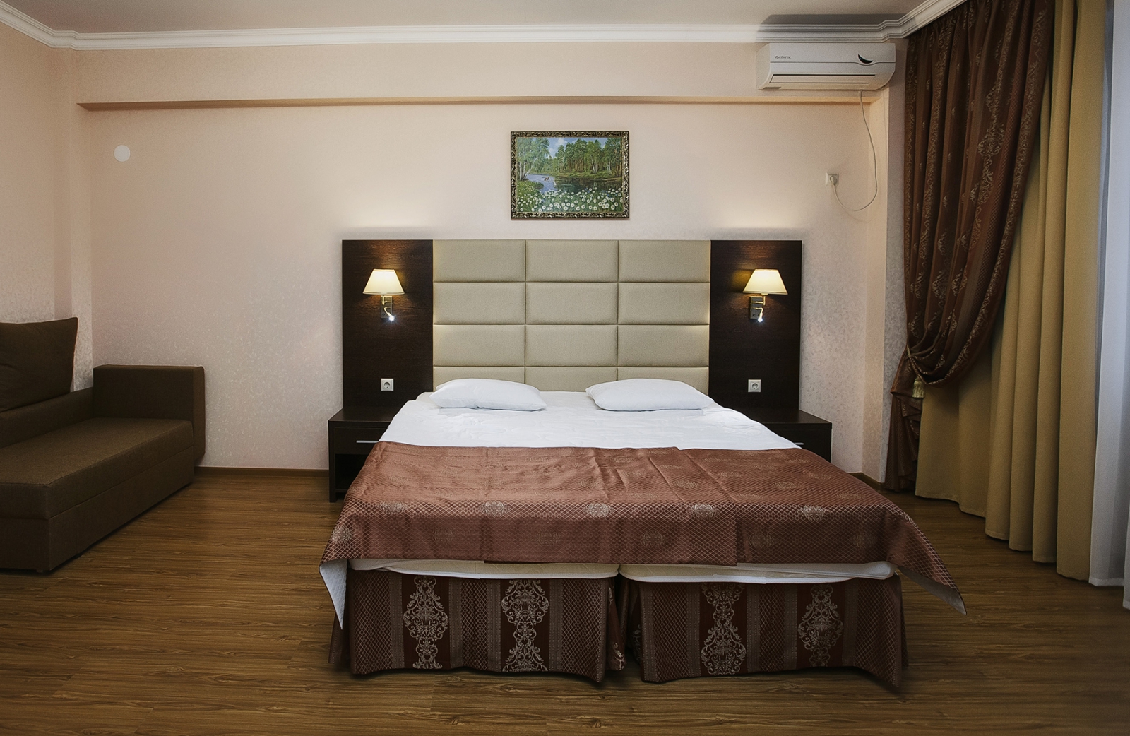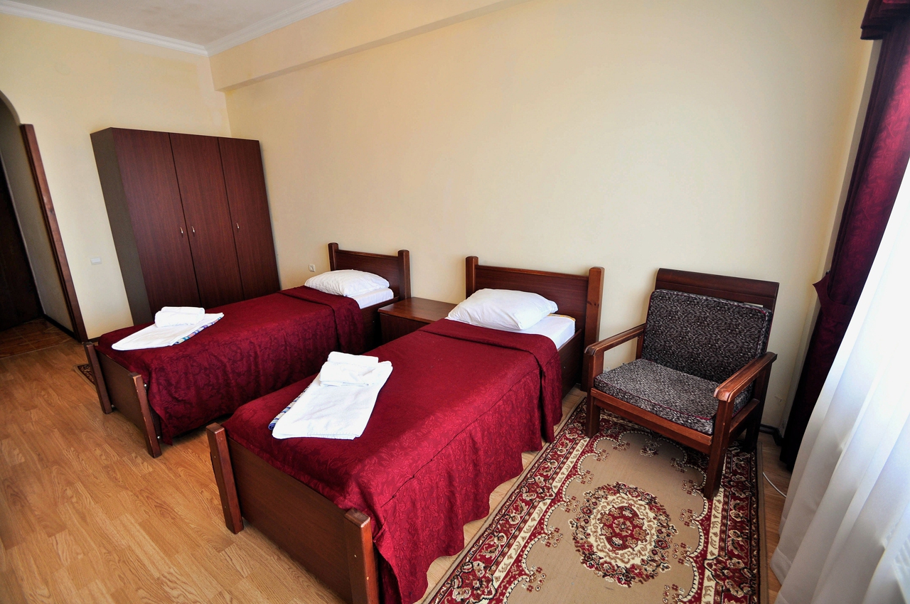 В корпусе: номерной фонд, столовая, ресепшн, 126 номеров, вид на море и горы. Номера: СТАНДАРТ, 1-й этаж ресепшен.