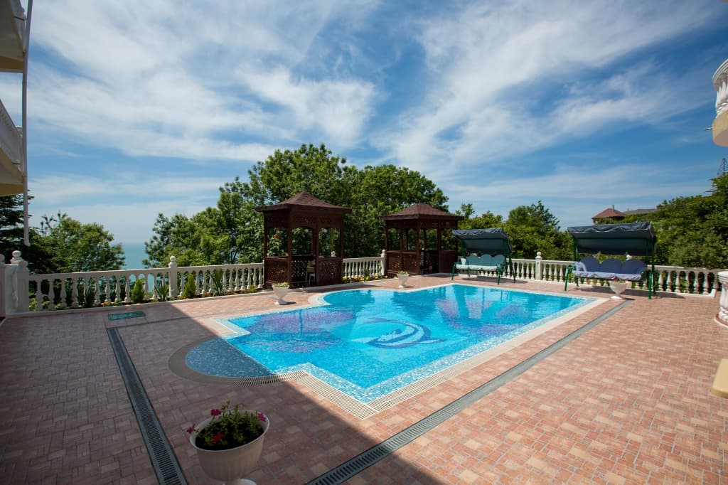 В корпусе: номерной фонд, бассейн, за основной территорией по адресу: пос. Лоо, ул. Бризовая, д. 65. Два здания в 3 этажа, б/лифта, рядом бассейн, 23 номера, вид на море и горы. Номера: СТАНДАРТ, СЕМЕЙНЫЕ.