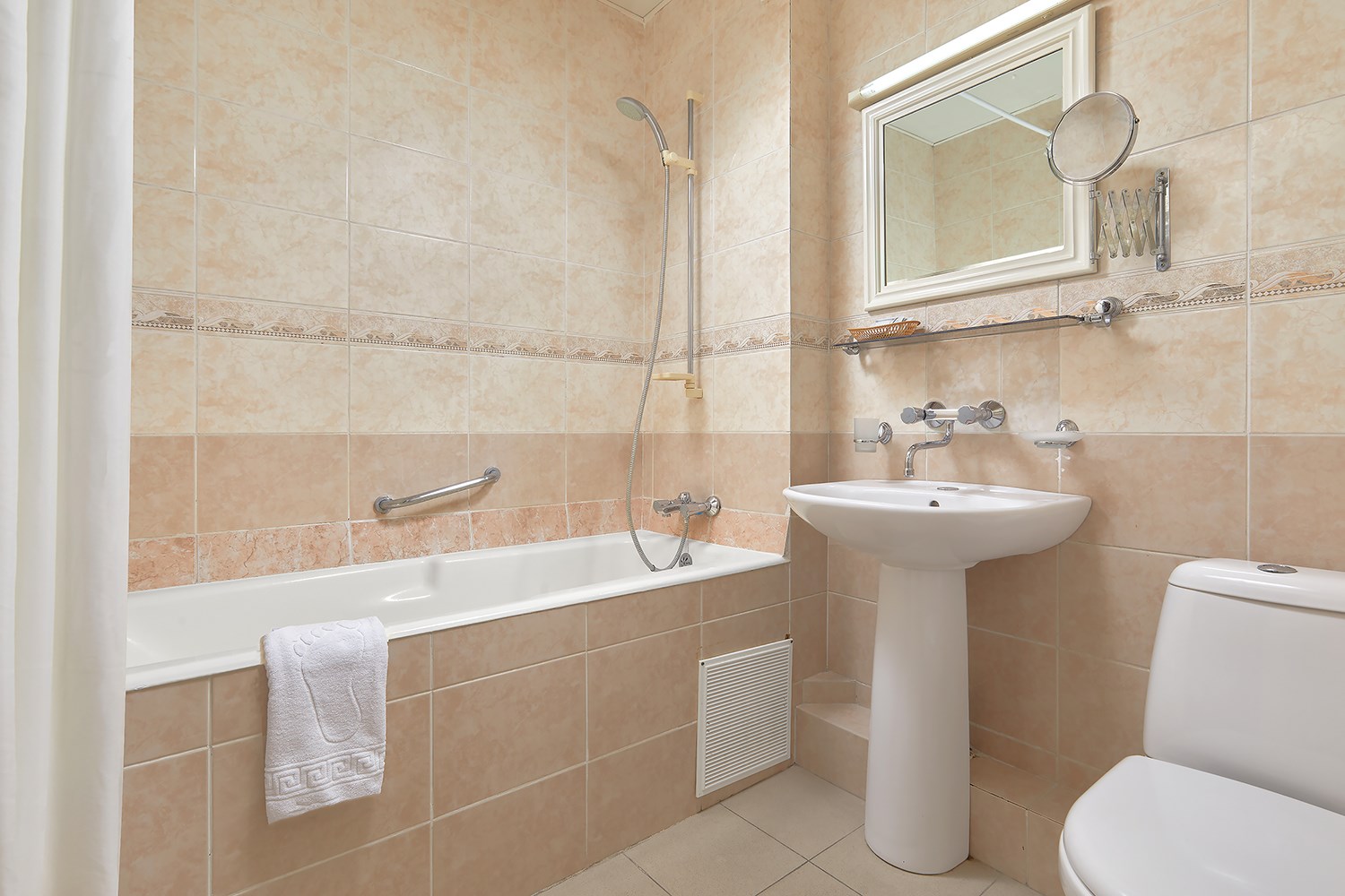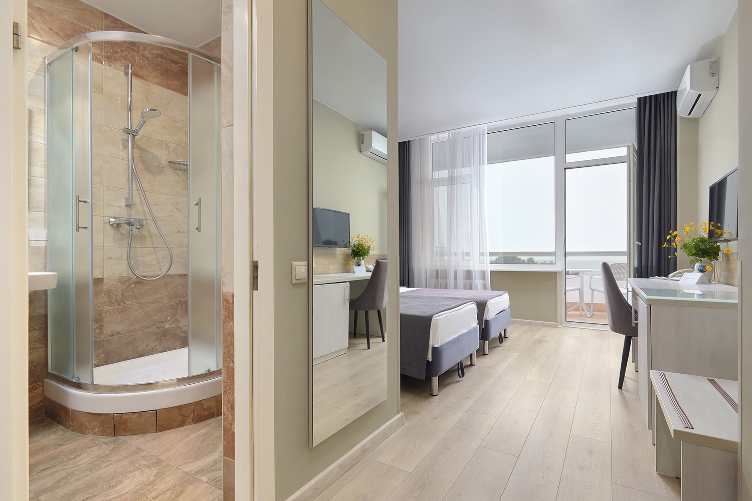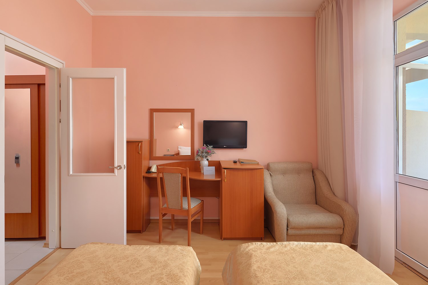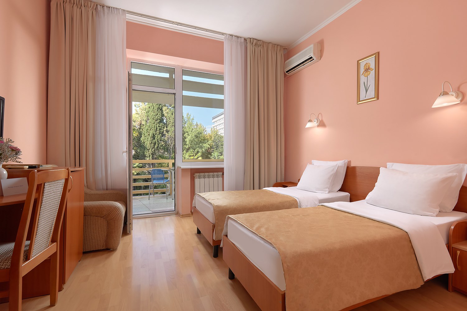 Пляж: галечный (в 50 м от отеля, собственный, оборудован аэрарием, стационарными и переносными лежаками. На пляже: тренажёрный уголок, настольный теннис, шахматы, лодки, гидровелосипеды, ловля рыбы.)