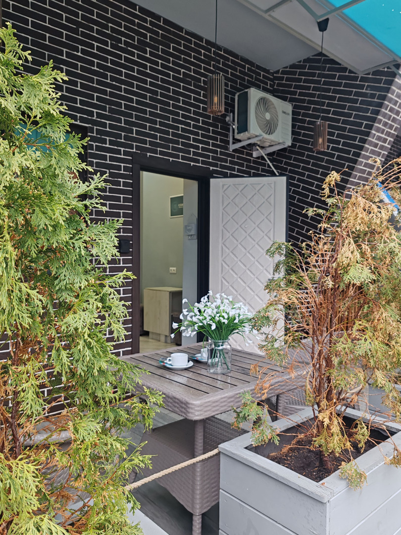 В номере: душ, туалет, ТВ, холодильник, кондиционер, фен, мини-кухня, электрочайник, СВЧ-печь, двуспальная или две раздельные кровати, диван (раскладной), балкон