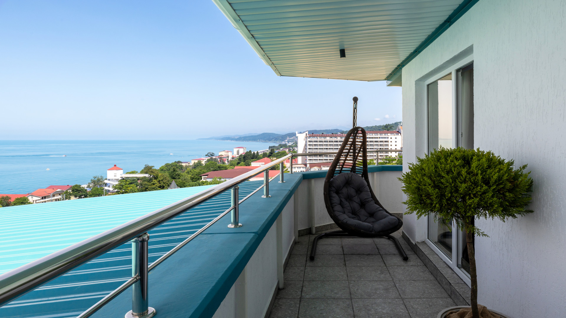 Пляж: галечный (в 110 м от корпуса с собственной выделенной зоной, на пляже: шезлонги, зонты, туалет, кабинки для переодевания, медпункт, спасательный пункт, кафе-бар)
