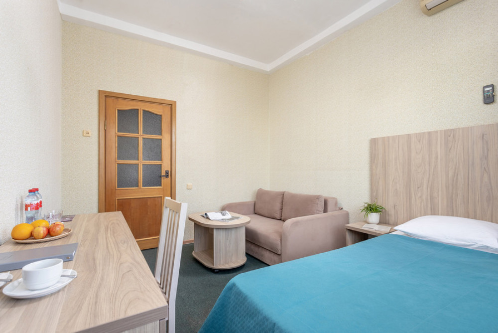В корпусе: 2-х местные 1- комнатные апартаменты (номера коннект), апартаменты двухкомнатные