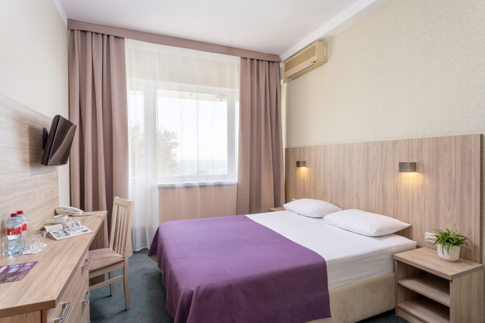 Бесплатные услуги: тренажерный зал, спортивная площадка, теннисный корт, парковка, анимация, Wi-Fi (в общественных зонах и номерах), галечный (оборудованный, в 250 м от 1-го корпуса. На пляже: медицинский пост, спасательный пост и вышка, стационарные зонты, аэрарий, шезлонги, игровой комплекс для детей. На пляж ведёт лестница – терренкур или лифт.)