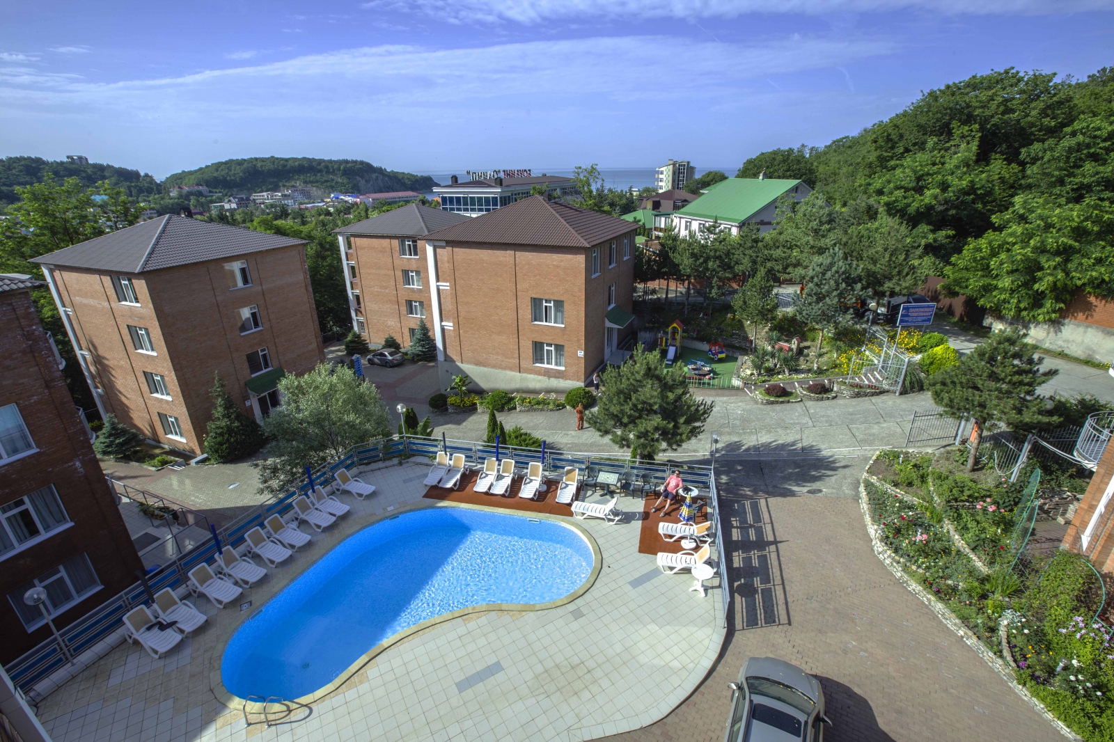 Бесплатные услуги: пользование открытым бассейнами, Wi-Fi в общественных зонах, детская игровая площадка, пользование оборудованным пляжем (шезлонг, теневой зонт), тренажерный зал, бильярд, библиотека.