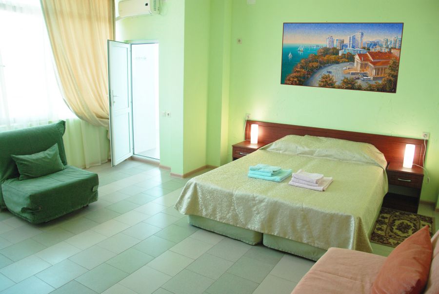 Бесплатные услуги: открытый бассейн без подогрева, парковка, библиотека, анимация, Wi-Fi, бильярд, галечный (в 100 м от пансионата, городской, оборудован зонтиками, лежаками, навесами (платно).)