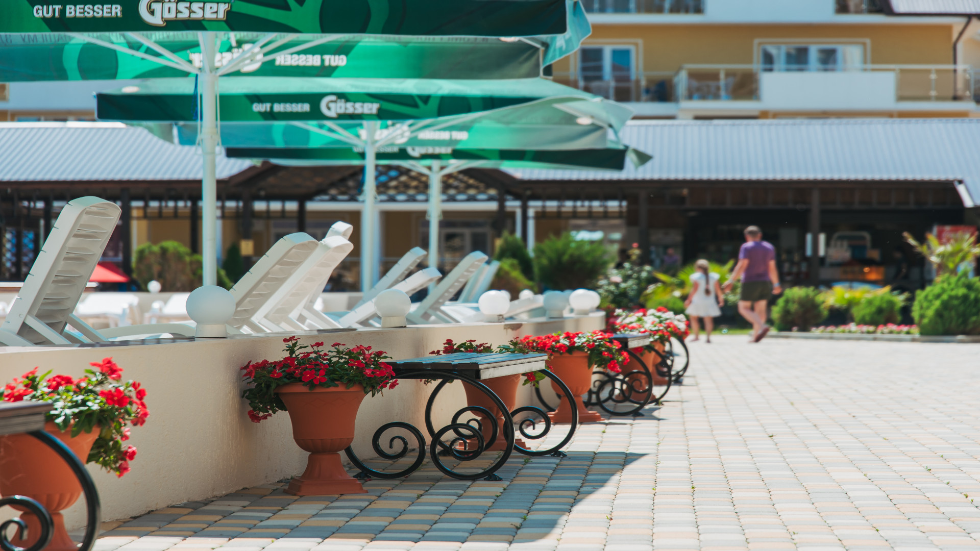 Спорт: открытый бассейн без подогрева, тренажерный зал, спортивная площадка (на территории отеля и на пляже), настольный теннис, прокат спортивного инвентаря (велопрокат)