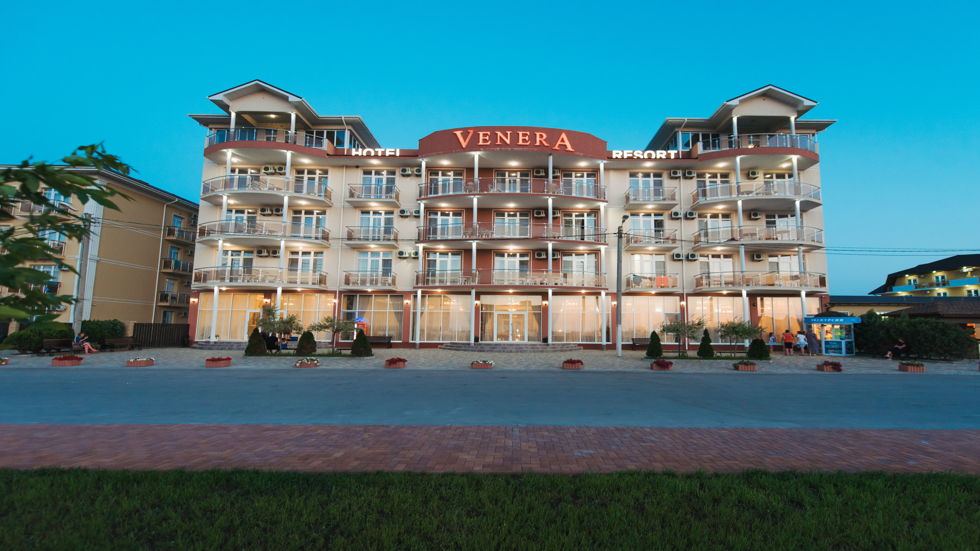 Отель «Venera Resort Hotel» это современный курортный комплекс, расположенный в курортном поселке Витязево г. Анапы, на первой береговой линии. Комфортабельные условия для семейного отдыха в формате «All Inclusive»: безупречный сервис, заботливый персонал и неустанное стремление к совершенству, позволит Вам и Вашей семье почувствовать себя самыми желанными гостями и сделают отдых по истине незабываемым! Удаленность от а/п г. Анапа - 12 км, от ж/д вокзала г. Анапа - 10 км.