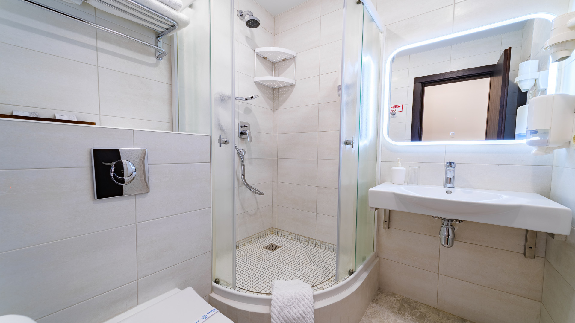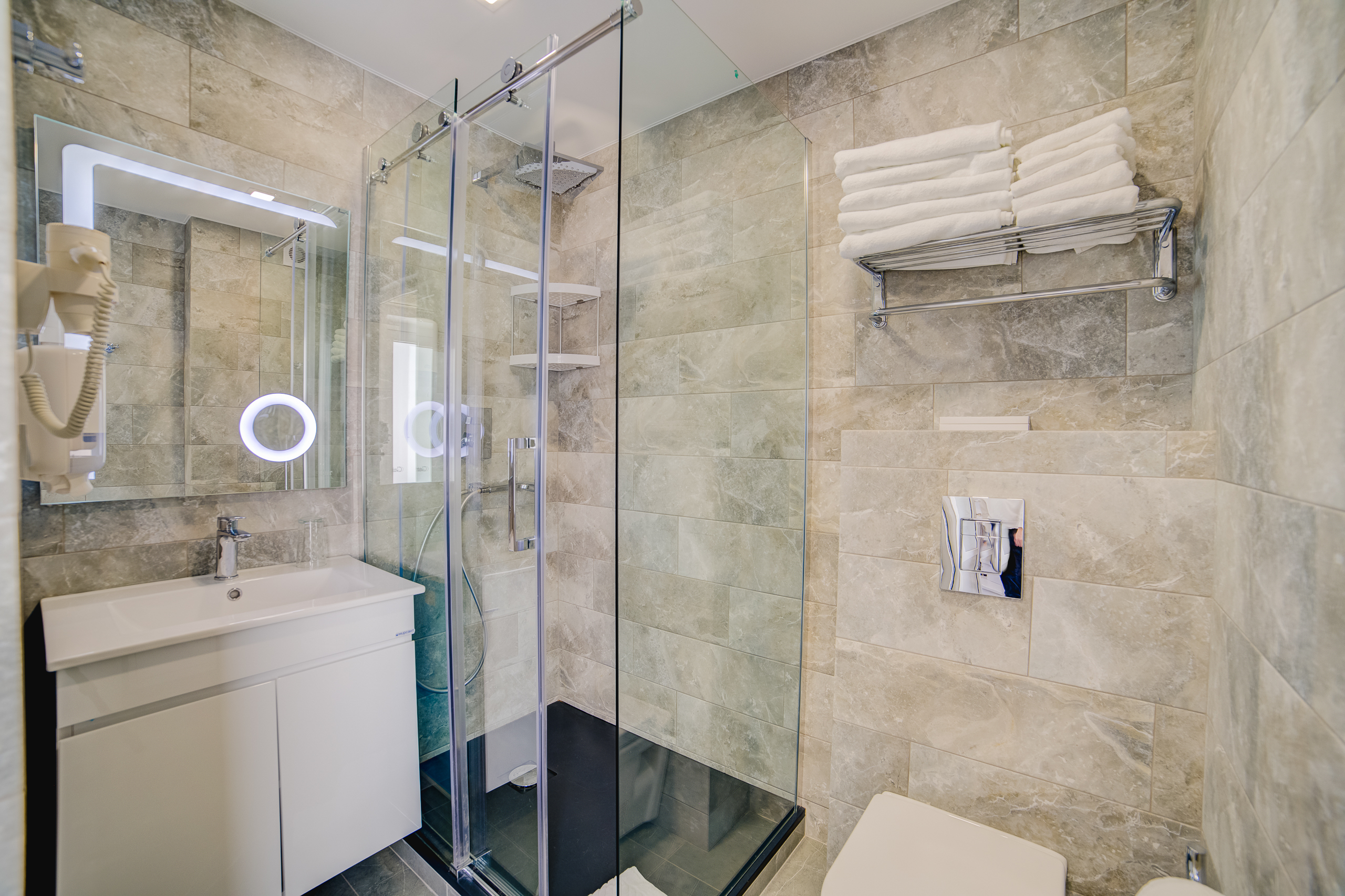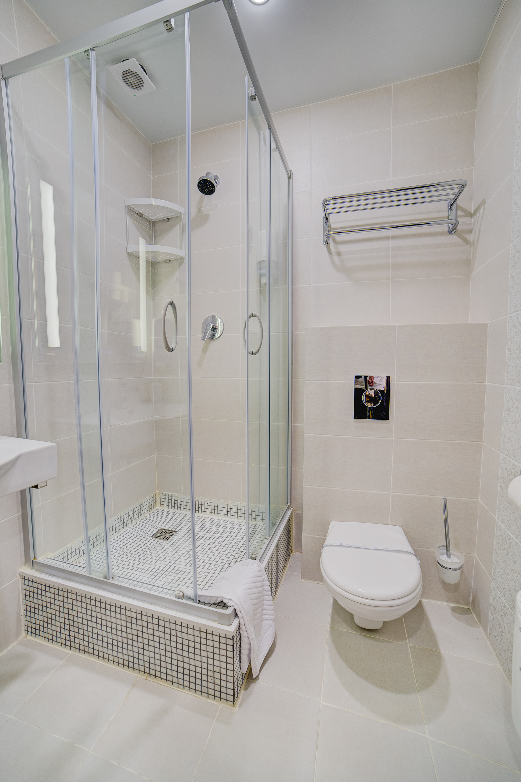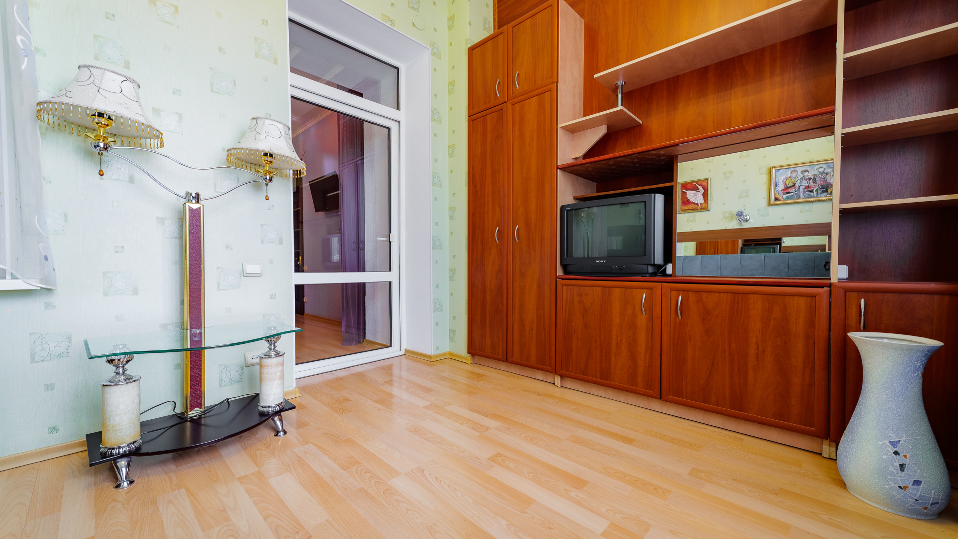 В номере: душ, туалет, ТВ, холодильник, кондиционер, сейф, фен, электрочайник, СВЧ-печь, диван, балкон. Площадь комнаты – 14 кв.м, диван-кровать, телевизор, холодильник, микроволновая печь, набор посуды, тапочки, туалетные средства, банные полотенца, кондиционер, сейф, автономное отопление (зимой), с/у с душевой кабинкой, фен, французский балкон (вид на город), WI-FI. Уборка – ежедневно, смена постельного белья – раз в три дня.