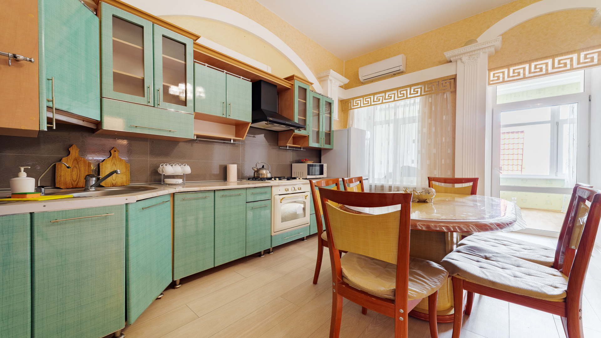 В номере: душ, ванна, туалет, ТВ, холодильник, кондиционер, сейф, фен, мини-кухня, электрочайник, СВЧ-печь, односпальная кровать, двуспальная кровать (2 шт), диван. Площадь – 75 кв.м: 4 комнаты на 1 этаже дома. Односпальная кровать, 2 двуспальных кровати, раскладной двуспальный диван, бытовая техника, газовая плита, набор посуды, тапочки, туалетные средства, банные полотенца, кондиционер, Wi-Fi, с/у с душевой кабинкой и ванной. Вид на город. Уборка и смена постельного белья – раз в пять дней.