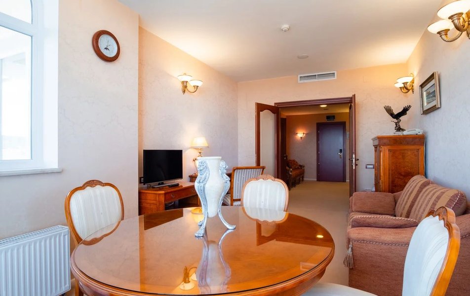 Наслаждайтесь просторными номерами с современным дизайном, эксклюзивными удобствами, включающими SPA-комплекс, приватный пляж, бассейны, фитнес-зал, рестораны русской кухни и персонализированный сервис, гарантирующими гостям незабываемый отдых.