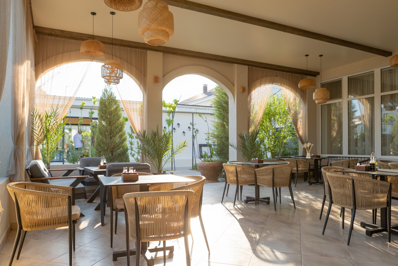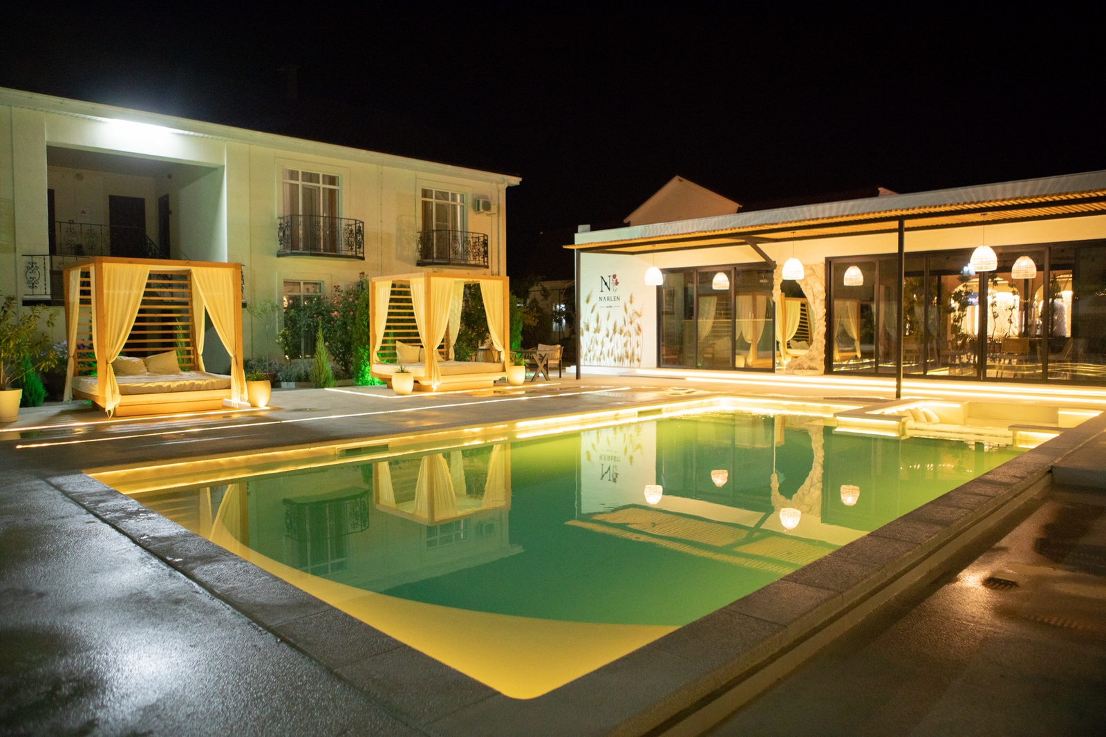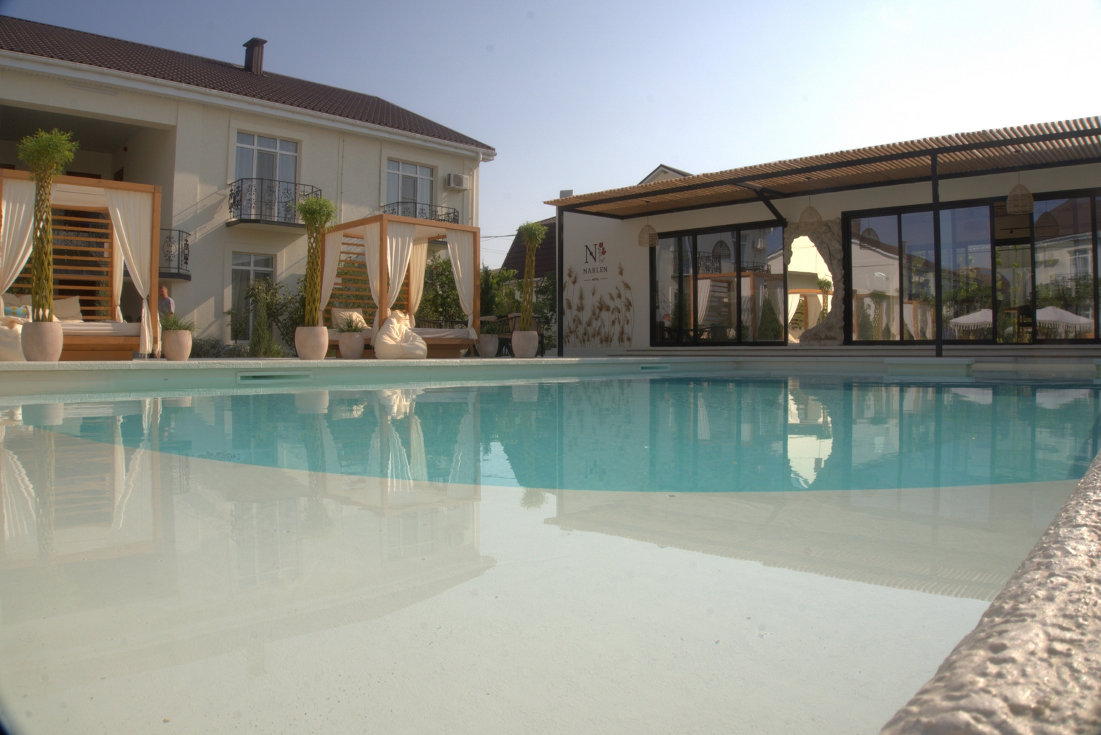 Гостиничный комплекс "Нарлен" раскинулся на обширной территории, прилегающей к морю. Вы оцените удивительно-красивый, оригинальный и при этом удобный ландшафт, вызывающий восторг гостей, как только войдете на территорию отеля. На ней найдется все, что нужно для приятного и беззаботного отдыха взрослых и детей. К вашим услугам - жилые корпуса, бар и ресторан, два бассейна (глубокий и мелкий), детская игровая и спортивная площадки, прачечная, мангальные зоны, крытые деревянные беседки и чайханы. Благоустроенная и ухоженная территория гостиничного комплекса утопает в зелени. Вас встретят увитые виноградом и вьюном аллеи, арки и беседки, зеленые ковры газонов, множество различных сортов роз, вечнозеленые южные растения и фруктовые деревья. Большие керамические амфоры, прямо из которых растут инжир и виноград, напомнят об античной эпохе и Средиземноморье!
