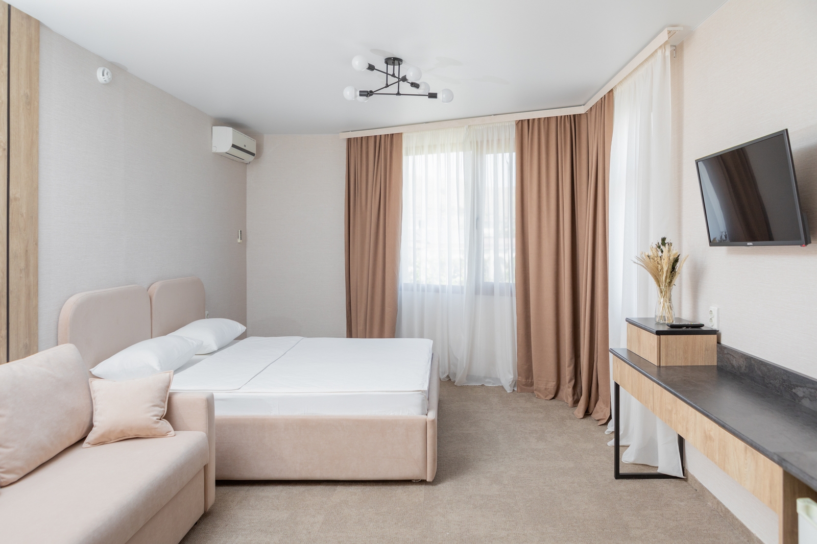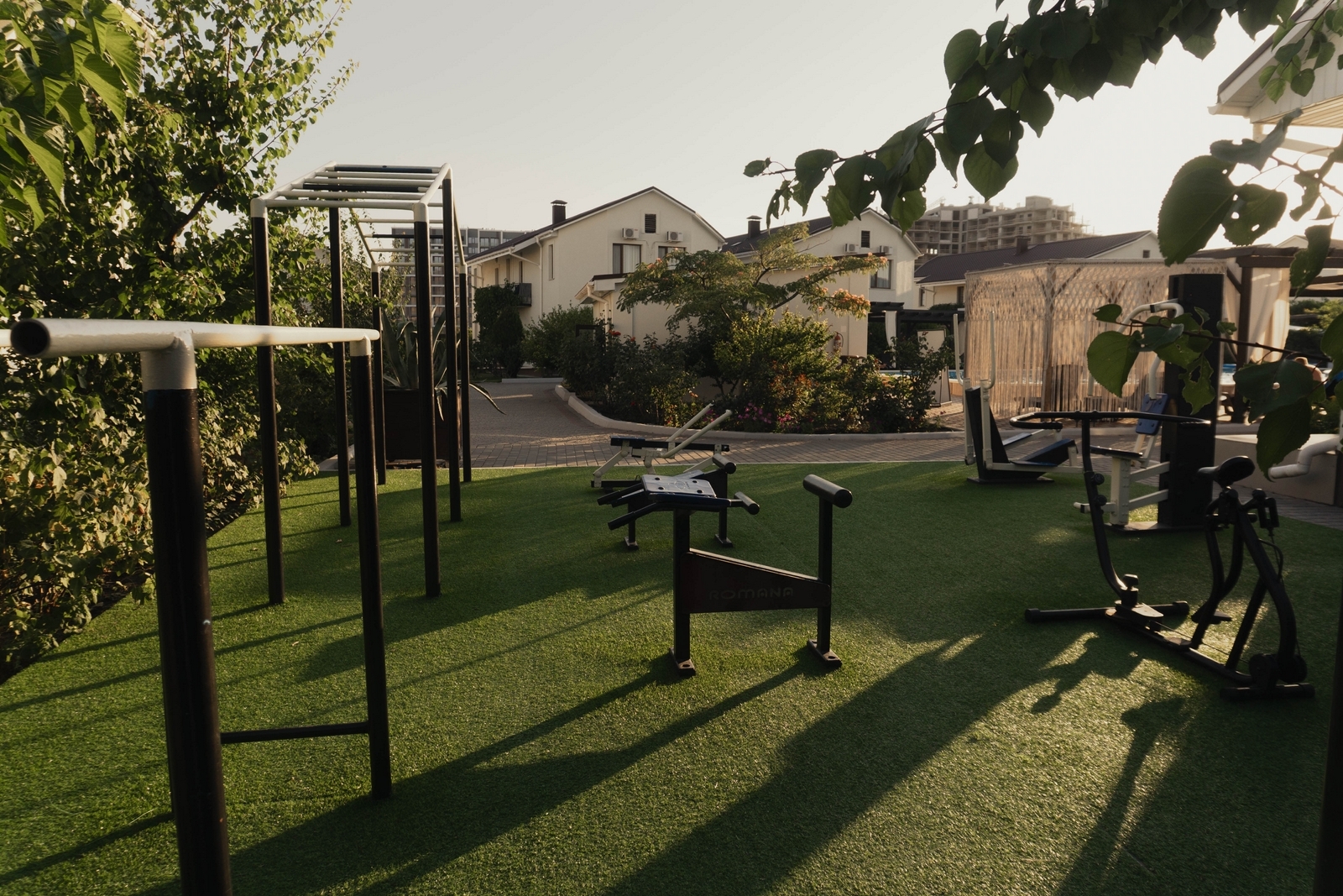 Спорт: открытый бассейн без подогрева (Взрослый бассейн размером 3×3 м с глубиной 1,5 м идеально подходит для любителей спокойного плавания и водных упражнений. Работает ежедневно с раннего утра до позднего вечера, позволяя расслабиться в любое удобное время.), спортивная площадка, прокат спортивного инвентаря (прокат велосипедов), открытый бассейн с подогревом (Подогрев по погодным условиям. Бассейн в зоне Бали до 15:00 общего пользования и для деток и взрослых, с 15:00 время только для взрослых 16+)