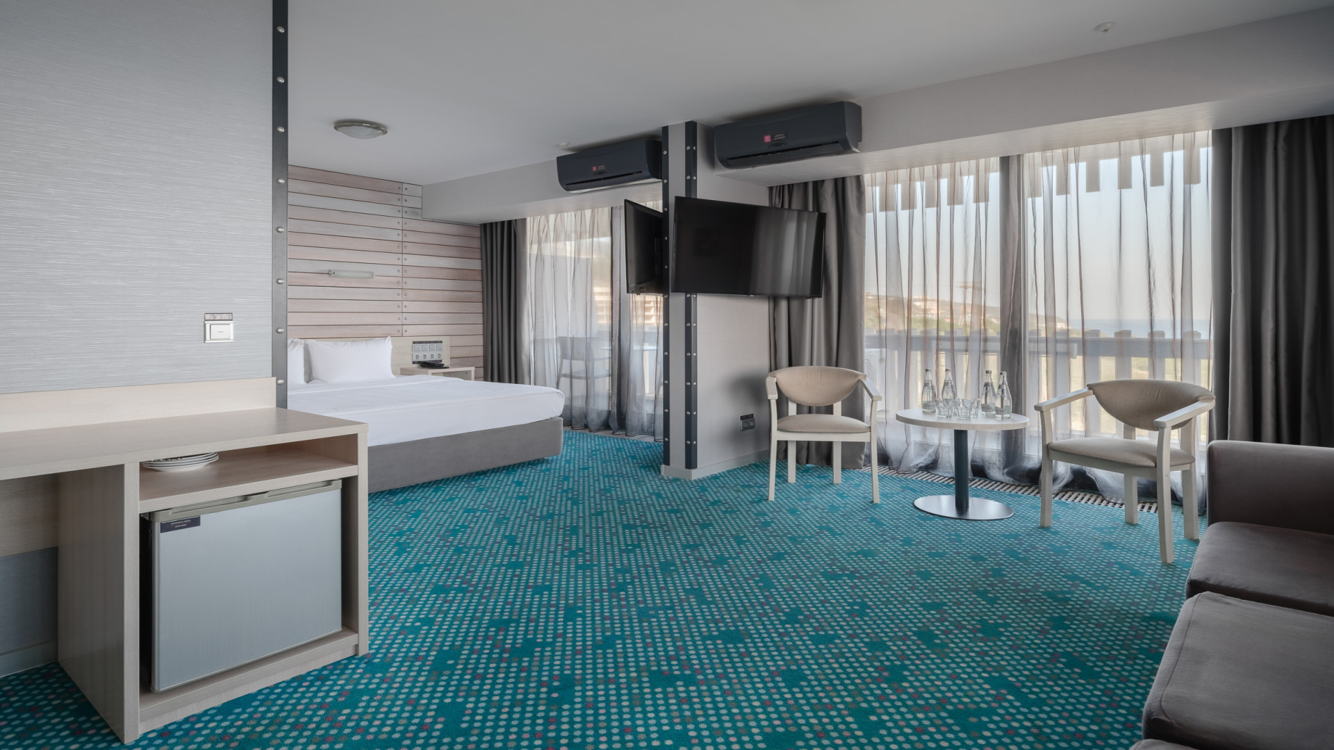 Спорт: тренажерный зал (панорамный фитнес-центр на 16-м этаже), спортивная площадка, футбольное поле (мини-футбол), прокат спортивного инвентаря, теннисный корт (3 корта под открытым небом с искусственным покрытием), каток (в зимнее время), волейбол, йога, аквааэробика, водное поло, мини-скалодром, водные аттракционы на пляже), открытый бассейн с подогревом (лимпийский, 50-метровый, с подогреваемой круглогодично морской водой, профессиональный прыжковый бассейн, переливной панорамный бассейн Инфинити с pool-баром и гидромассажем), аквапарк (В период с 01.06 по 30.09)