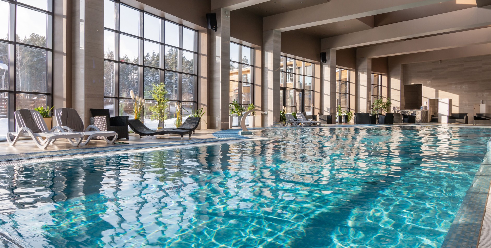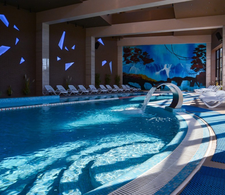 Спорт: крытый бассейн (с панорамными окнами;), тренажерный зал, спортивная площадка, прокат спортивного инвентаря, каток (в зимний период), открытый бассейн с подогревом (температура воды - круглогодично 29 – 30 градусов)