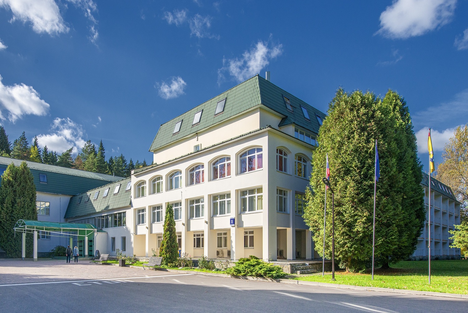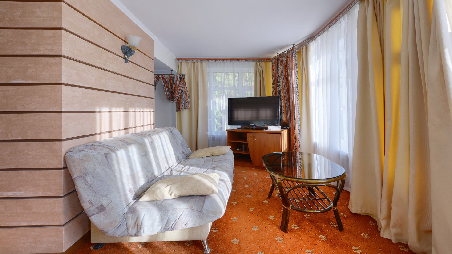 В корпусе: номерной фонд, столовая, бассейн, ресепшн