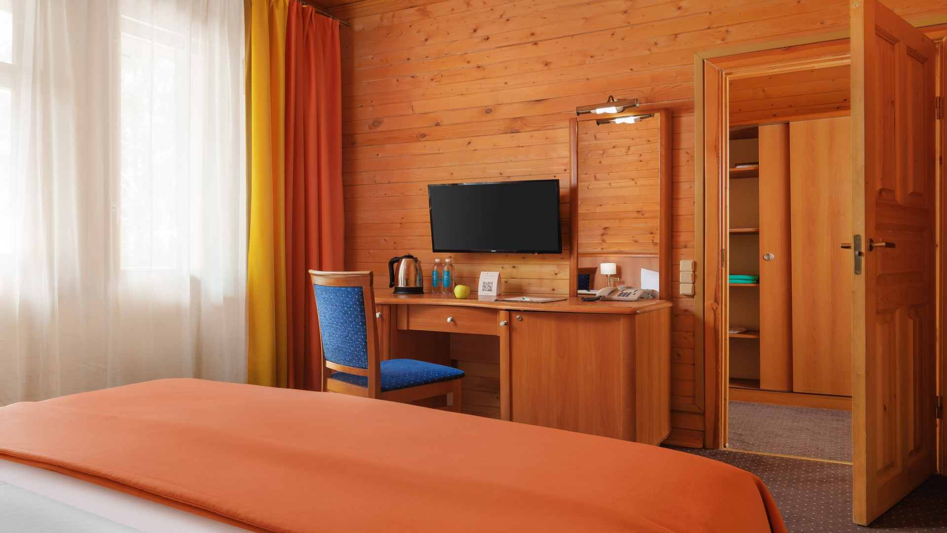 Спорт: крытый бассейн (1 час в день), тренажерный зал (до 2 часов в день), спортивная площадка, настольный теннис, футбольное поле, прокат спортивного инвентаря (для летнего и зимнего отдыха)