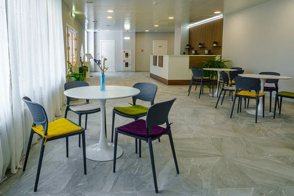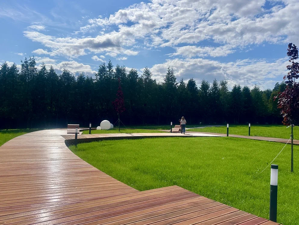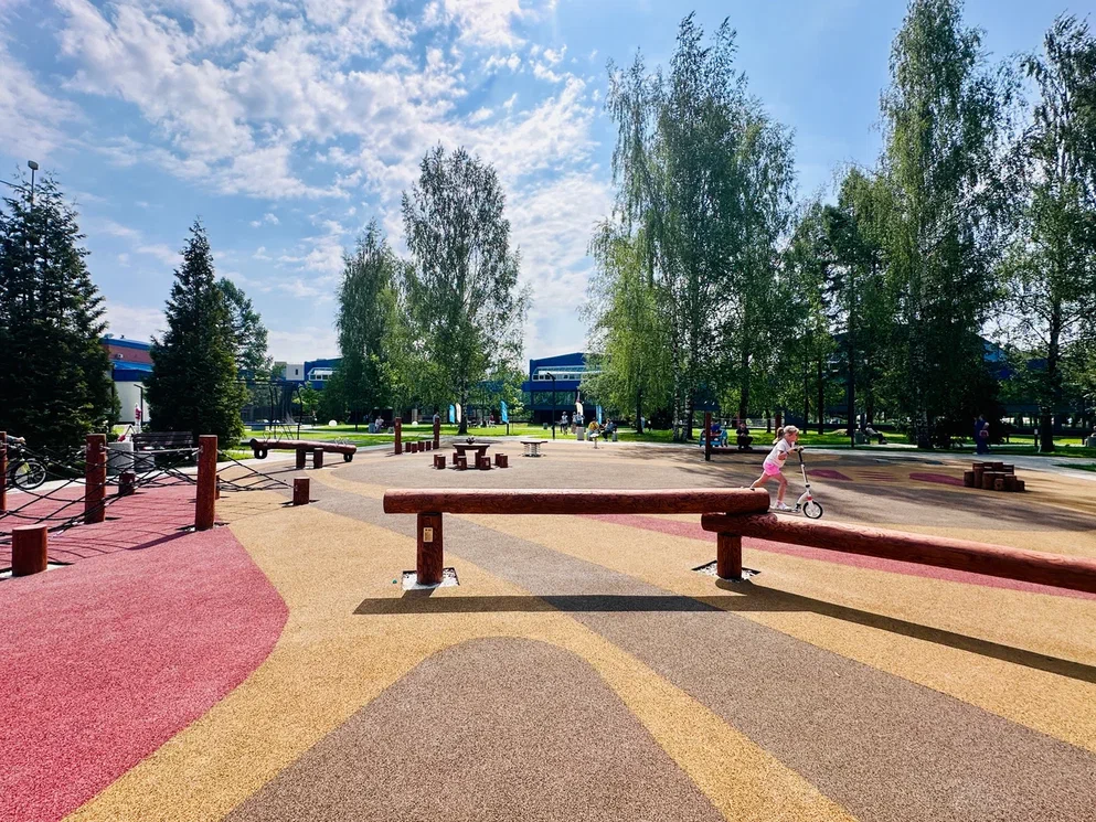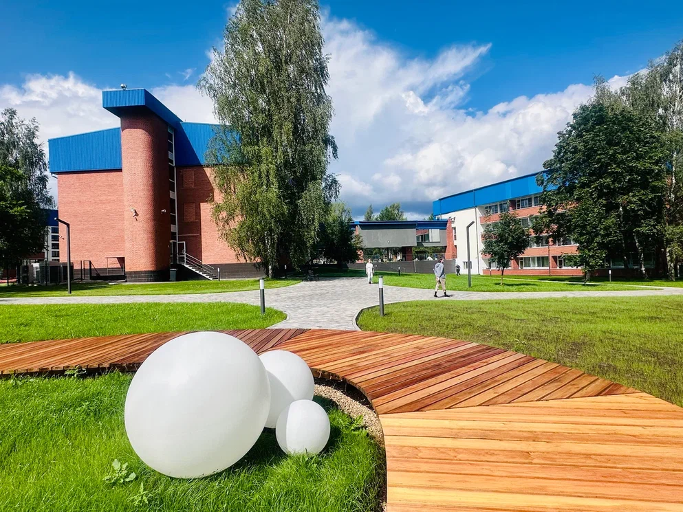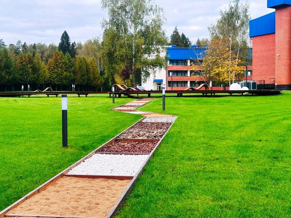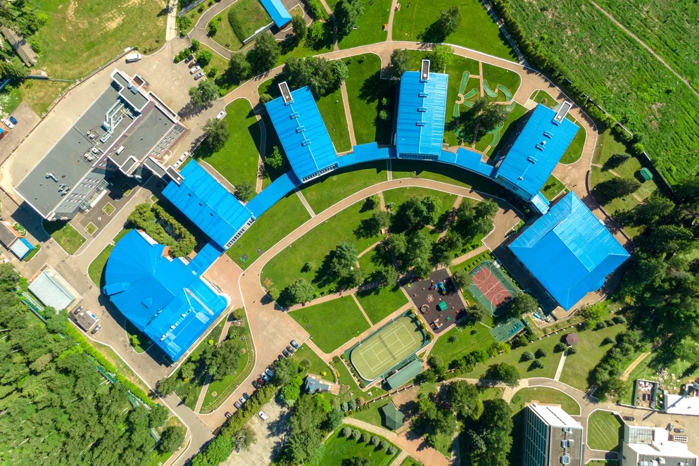 крытый бассейн (подогреваемый, имеет длину 25 м, максимальную глубину 2,1 м), спортивный зал, тренажерный зал (Современная линия профессиональных тренажеров от фирмы VASIL GYM, широкий ряд свободных отягощений и гантелей от 1 до 50 кг от фирмы KETLER, беговые дорожки, степ- и велотренажёры от фирмы TUNTURI, оборудование и инвентарь для шейпинга.), спортивная площадка (для игры в баскетбол и волейбол; многопролётные перекладины, брусья, шведские стенки, отягощения и скамейки для пресса), настольный теннис, теннисный корт (поле для мини-гольфа на 10 лунок), каток (В зимний период), парковка, библиотека, анимация (Взрослая и детская. Активности чередуются таким образом, чтобы можно было и подвигаться, и проявить творческие способности в спокойной атмосфере, и узнать что-то новое, а также просто весело провести время.), Wi-Fi, песчаный (в летний период на территории 7 корпуса)