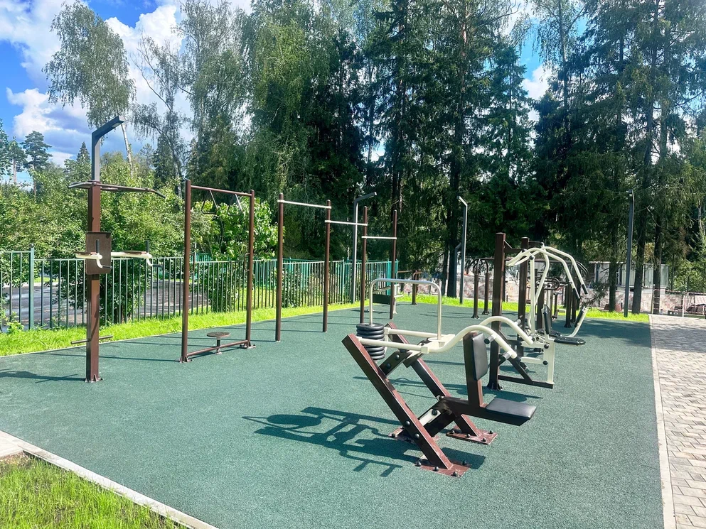 крытый бассейн (подогреваемый, имеет длину 25 м, максимальную глубину 2,1 м), спортивный зал, тренажерный зал (Современная линия профессиональных тренажеров от фирмы VASIL GYM, широкий ряд свободных отягощений и гантелей от 1 до 50 кг от фирмы KETLER, беговые дорожки, степ- и велотренажёры от фирмы TUNTURI, оборудование и инвентарь для шейпинга.), спортивная площадка (для игры в баскетбол и волейбол; многопролётные перекладины, брусья, шведские стенки, отягощения и скамейки для пресса), настольный теннис, футбольное поле, прокат спортивного инвентаря (велосипедов, веломобилей, электро-миниквадроциклов и спортивного инвентаря), теннисный корт (поле для мини-гольфа на 10 лунок), каток (В зимний период)