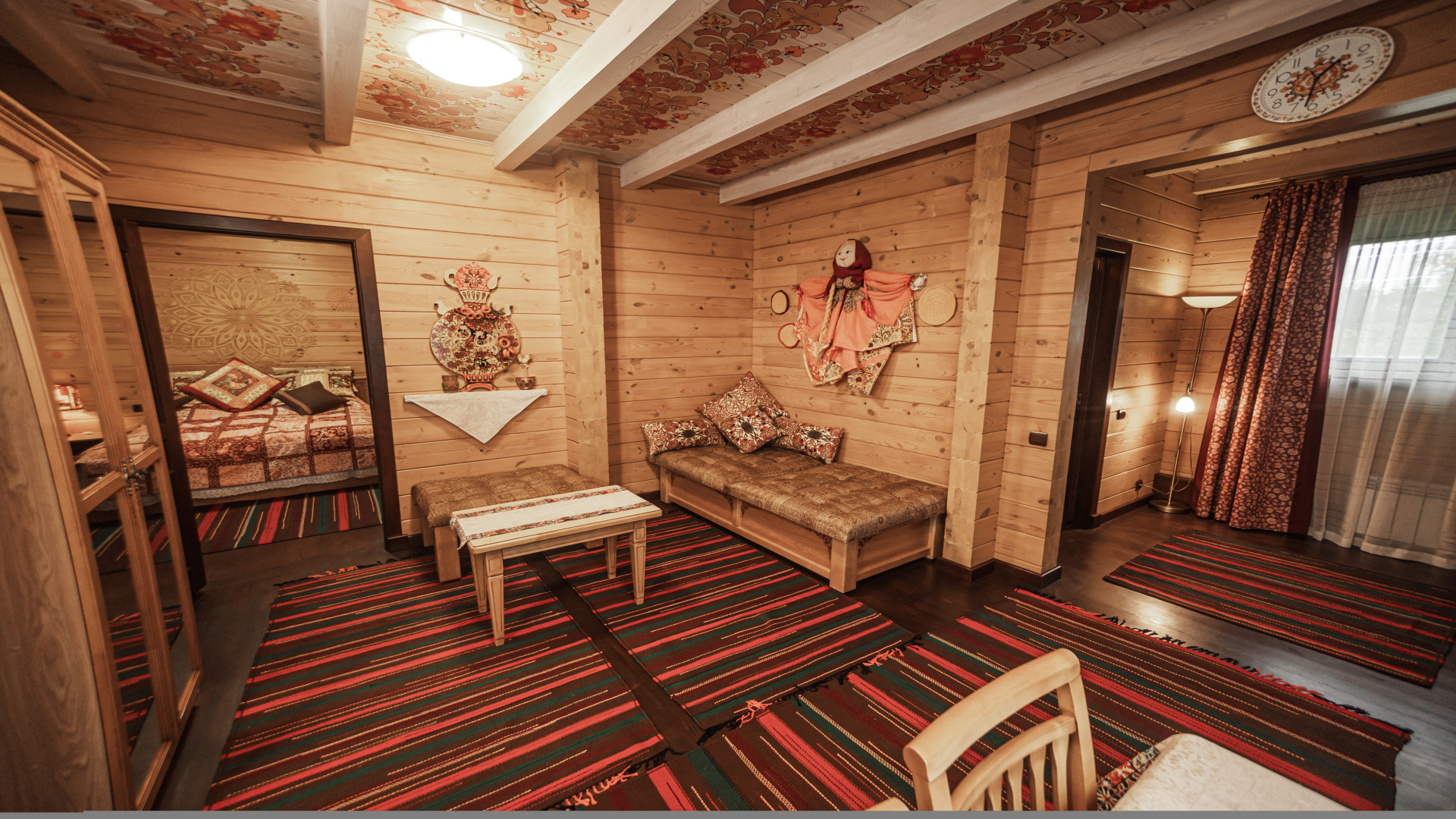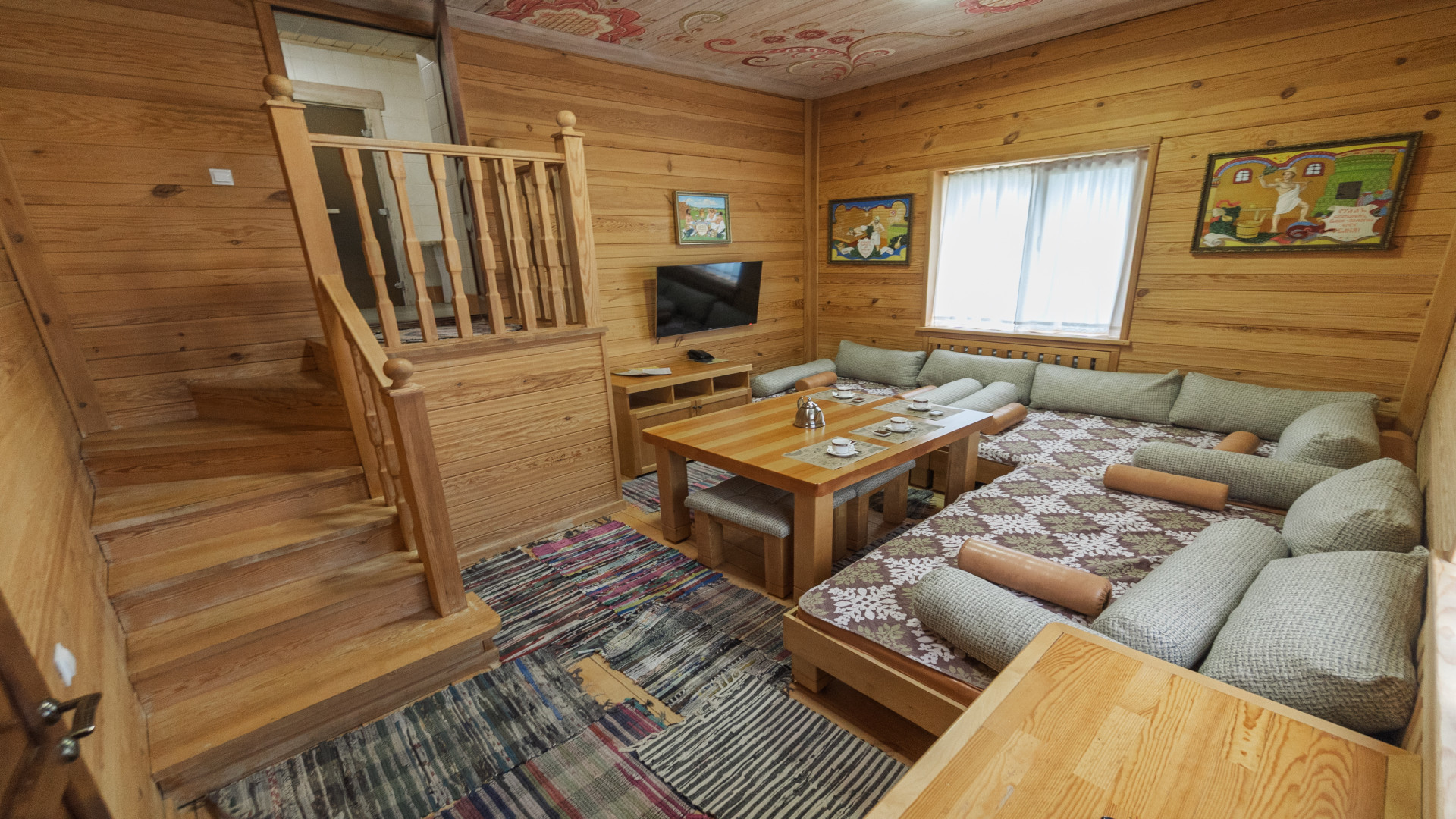 Уютные номера из кедра с отдельным входом и террасой, с видом на горы и озеро. Номера оформлены в русском стиле и оборудованы всем необходимым для комфортного проживания: кухня и ванная комната, микроволновая печь, кондиционер, Wi-Fi, кабельное телевидение, сейф. В стоимость включен вкусный завтрак.