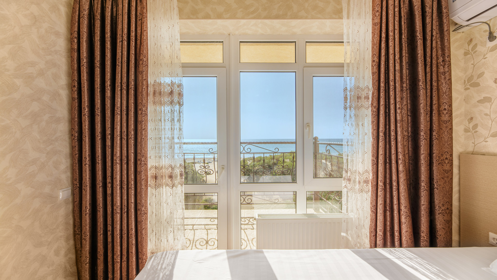 1‑я комната: двуспальная кровать (или две односпальные), шкаф, ТВ, кондиционер.