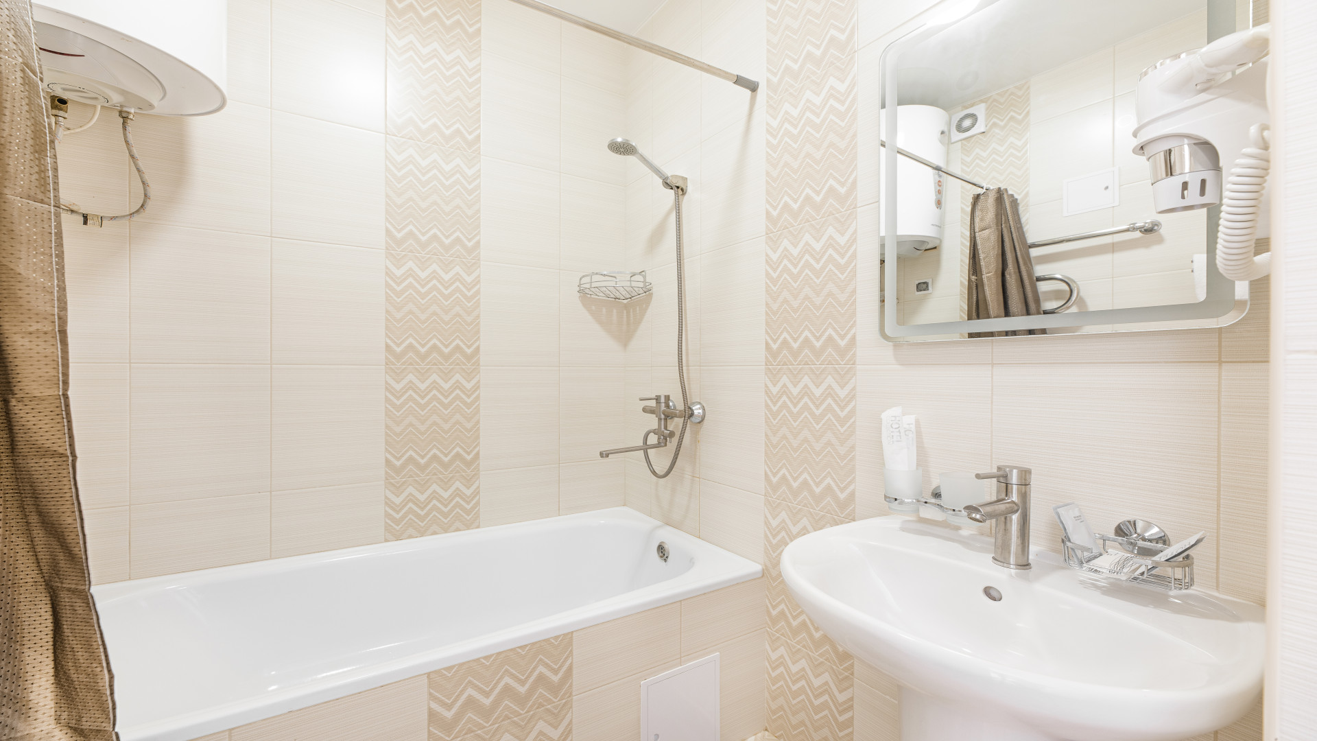 В номере: душ, ванна, туалет, ТВ, холодильник, кондиционер, сейф, фен, телефон, электрочайник, двуспальная или две раздельные кровати. Однокомнатный номер. В номере: две раздельные или одна двуспальная кровать (бокс-спринг), плательный шкаф, рабочий стол, кресло, подставка для чемодана, прикроватные тумбы, зеркало, настенные бра, настольная лампа, сейф, мини-холодильник, сплит-система, ЖК-телевизор, чайная станция, телефон, WI-FI, система электронного доступа. Оснащение ванной комнаты: душ, раковина, унитаз, зеркало, фен, сушилка для белья, халаты, тапочки, банные принадлежности и набор гостиничной косметики.