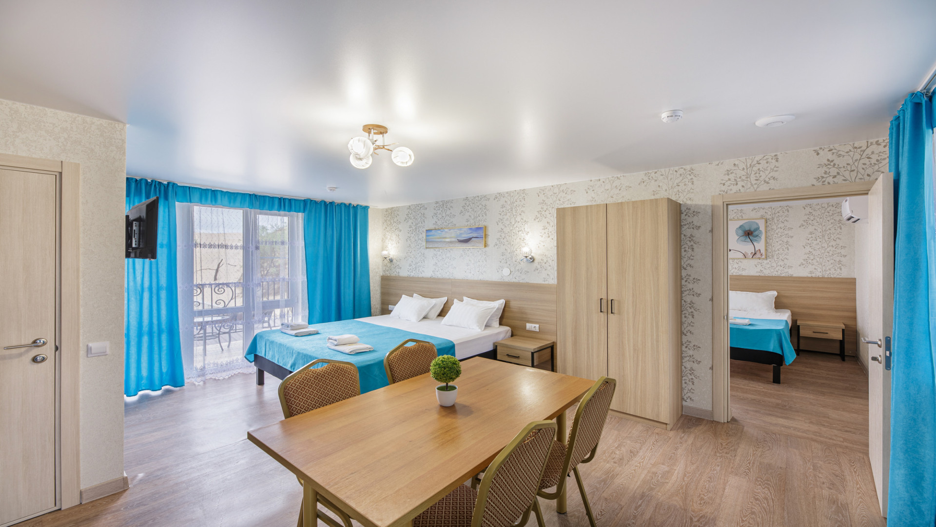 Уютный и просторный двухкомнатный номер для семьи до 6 человек (5+1). Комнаты изолированные. Вид во двор или на бассейн.