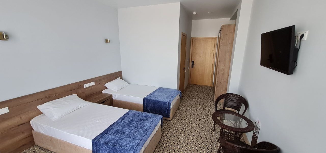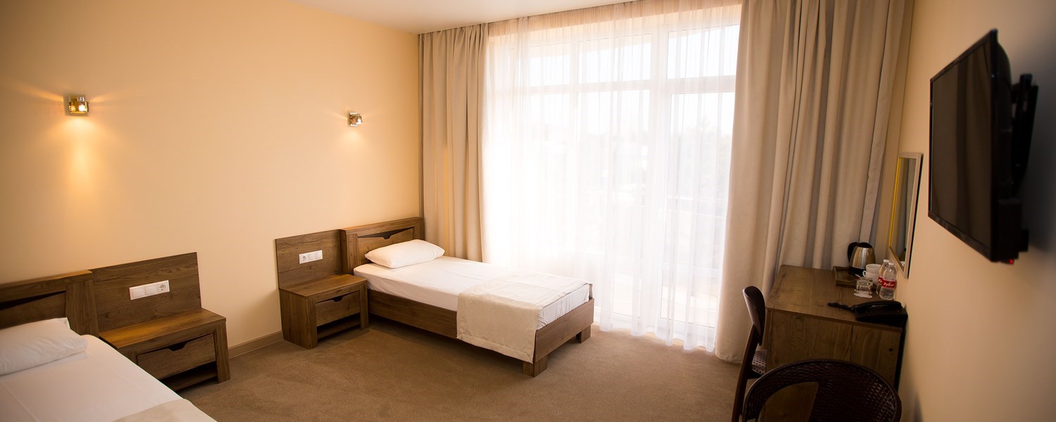 В номере: душ, туалет, ТВ, холодильник, кондиционер, сейф, фен, телефон, чайная станция, электрочайник, две раздельные кровати